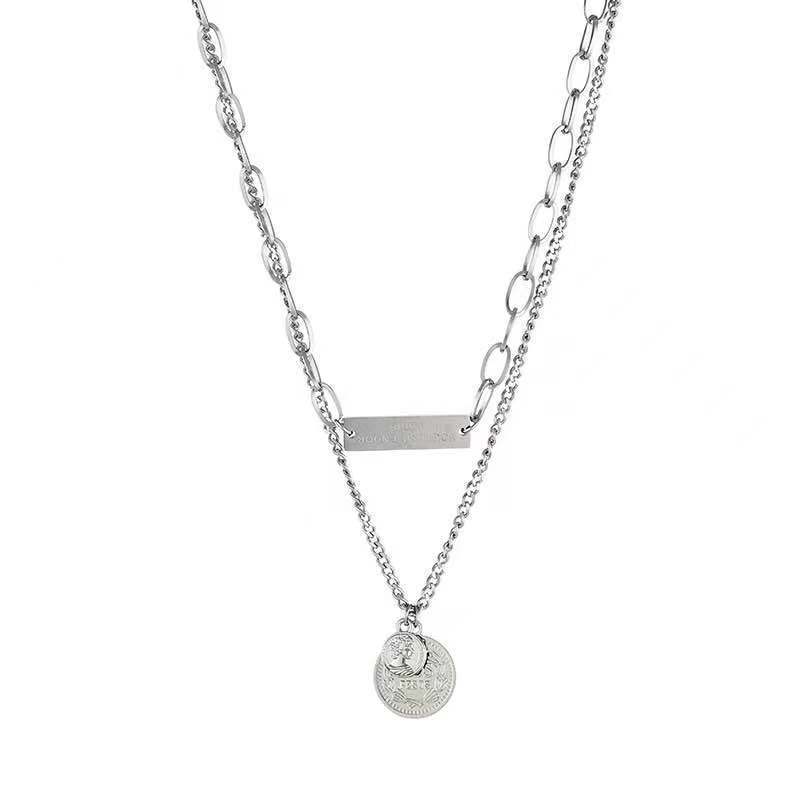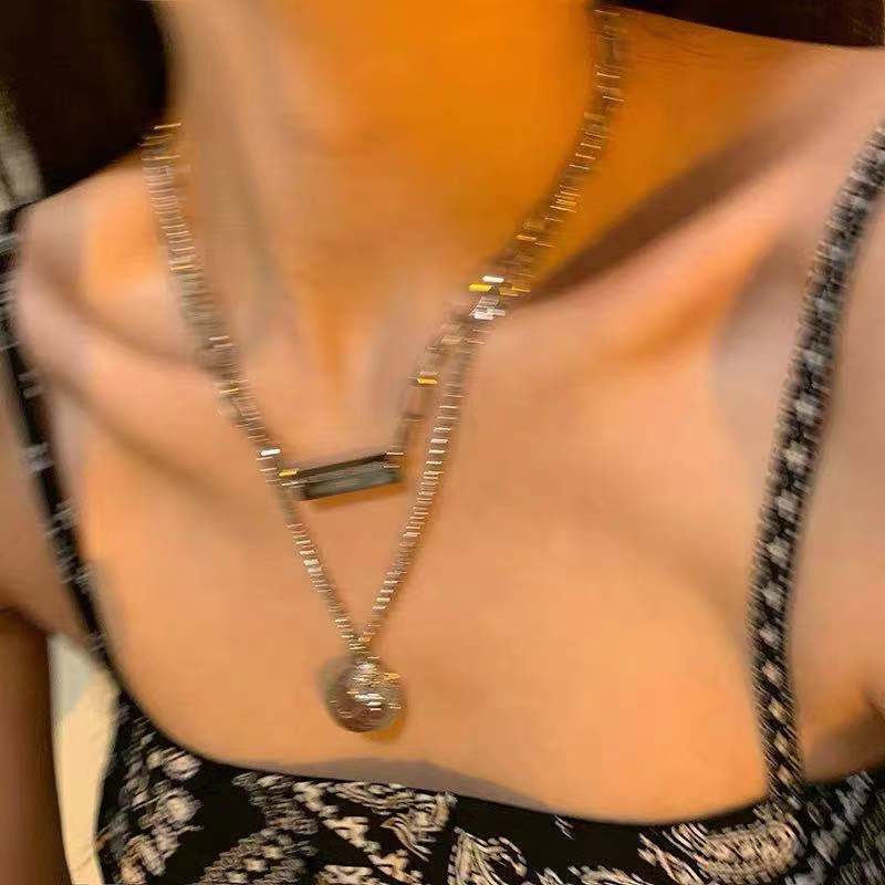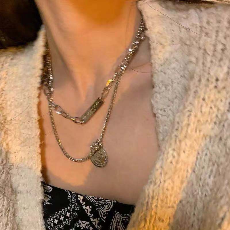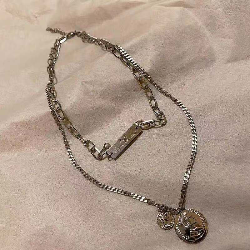 人像ins冷淡风双层钛钢项链女ins嘻哈小众设计感锁骨链
