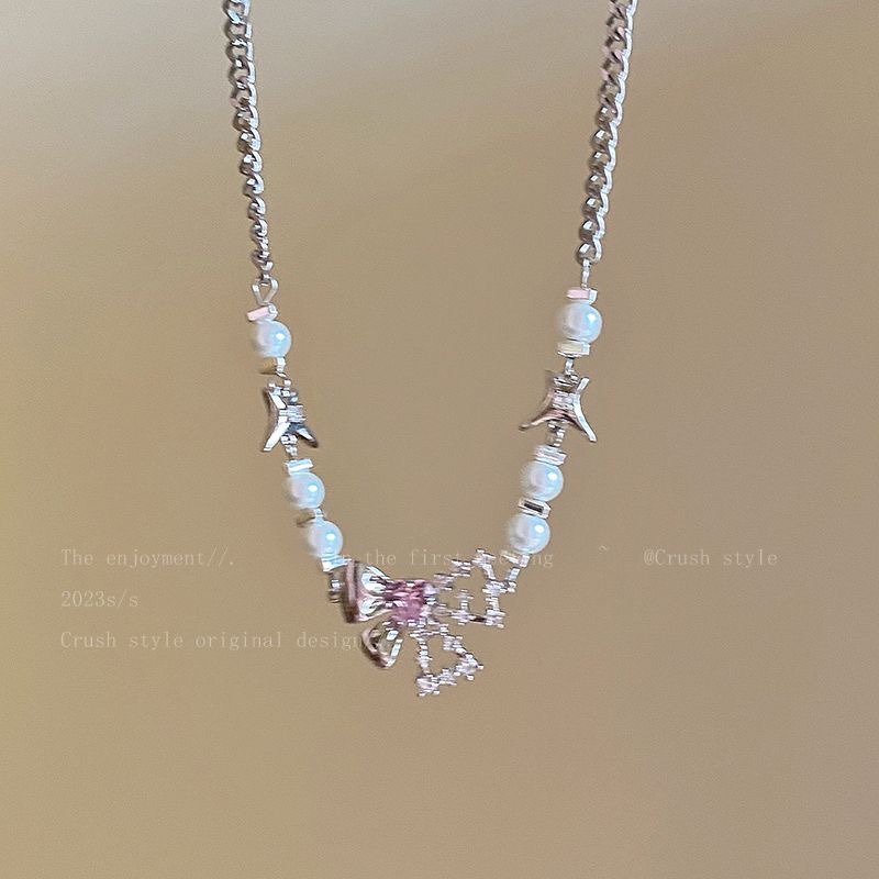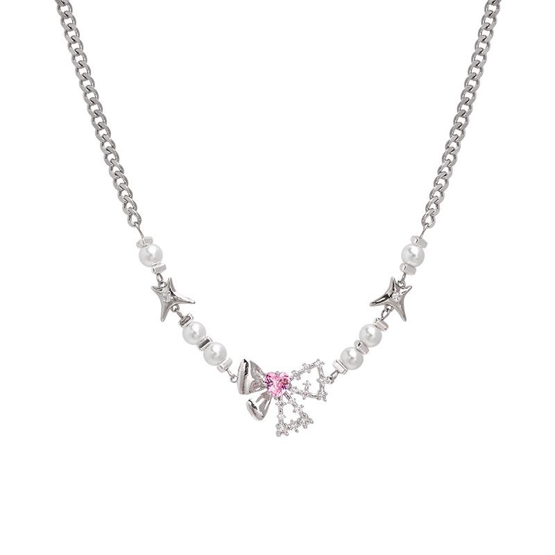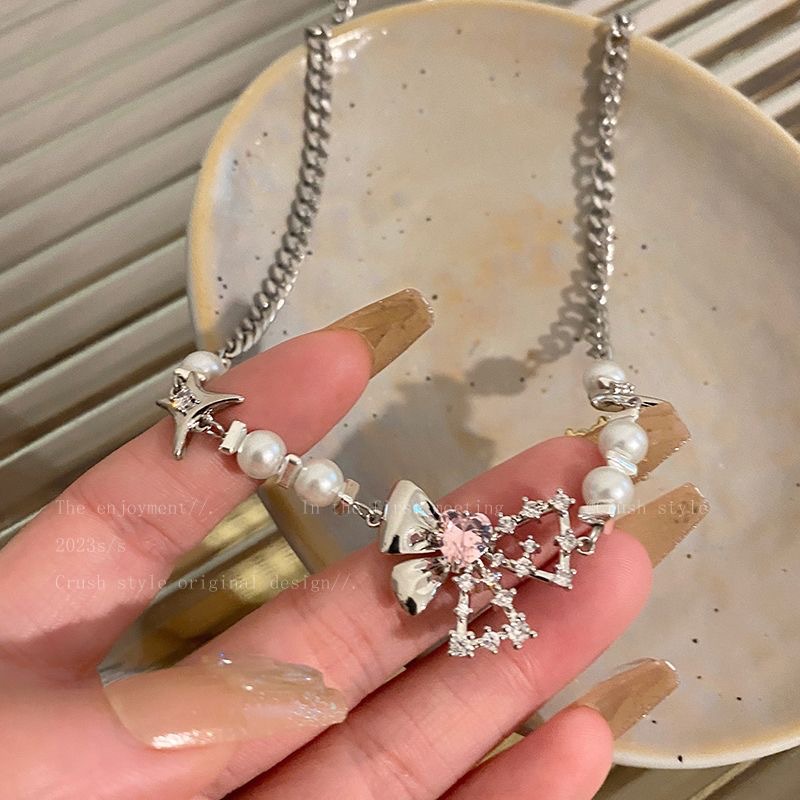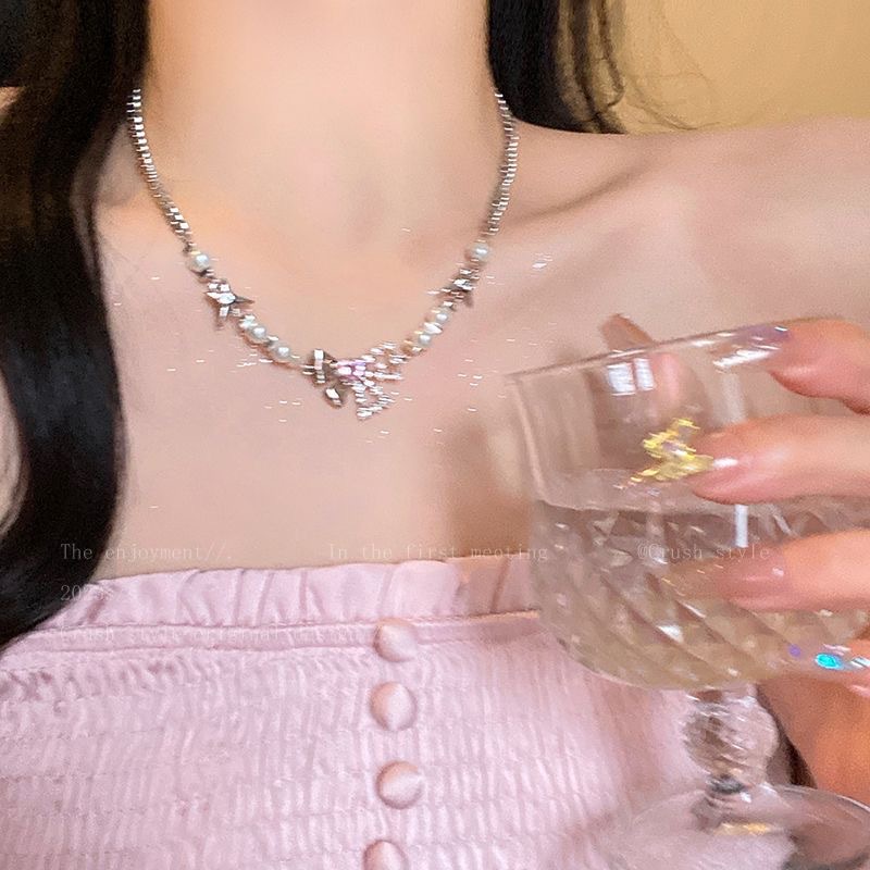 蝴蝶结锆石珍珠项链女款ins网红甜酷辣妹配饰轻奢小众甜美锁骨链