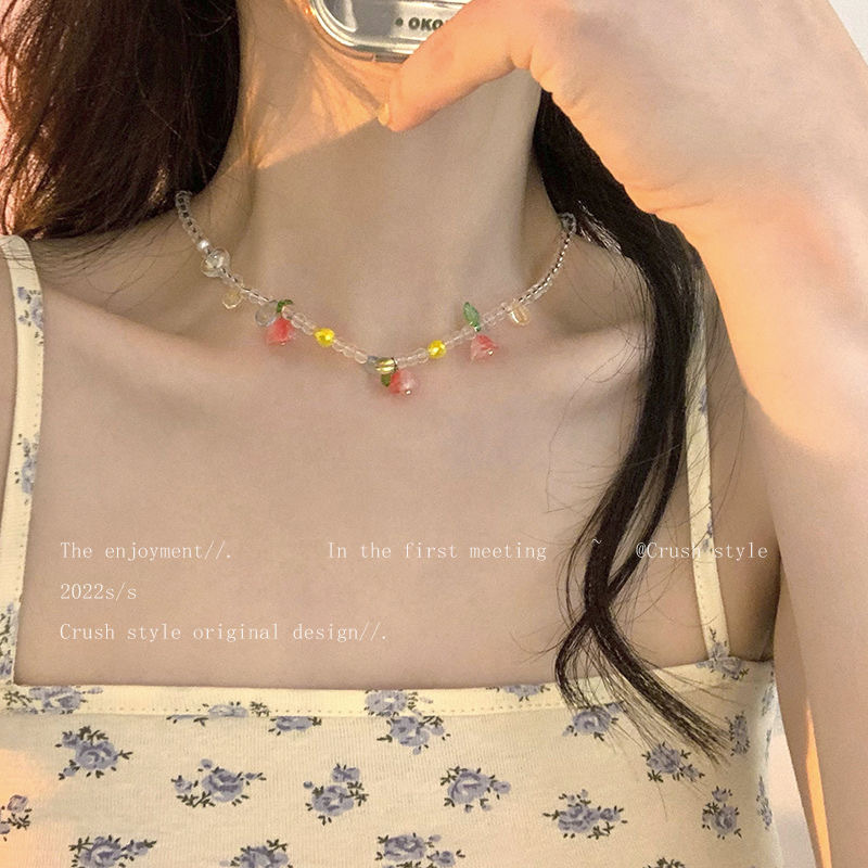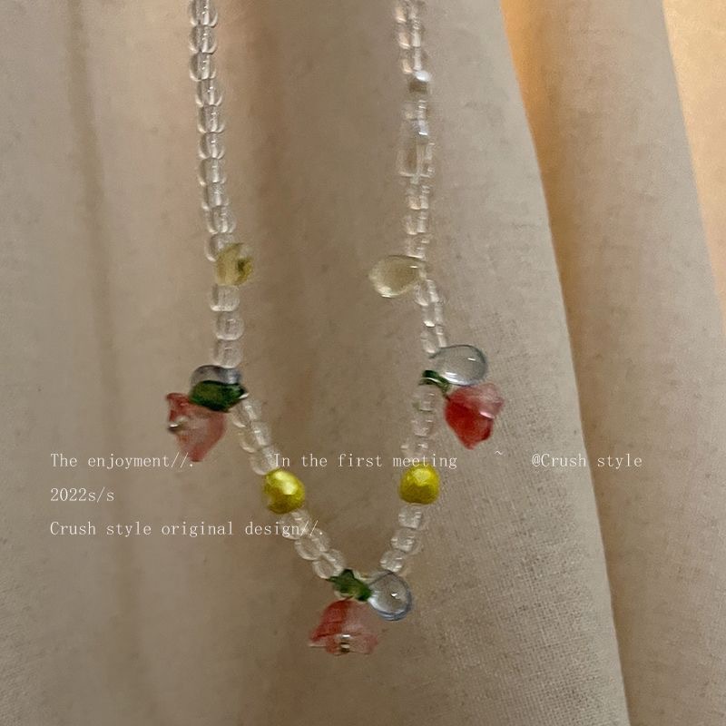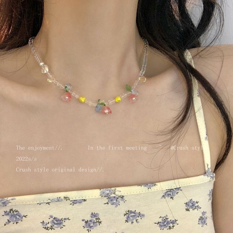郁金香花朵吊坠项链女夏季气质百搭网红锁骨链ins亚克力串珠配饰