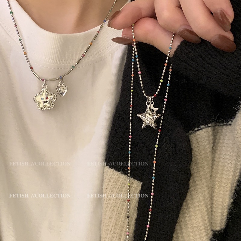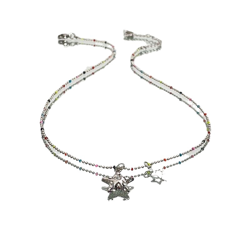 彩珠星星项链ins潮小众气质高级感简约轻奢米珠锁骨链百搭潮颈链