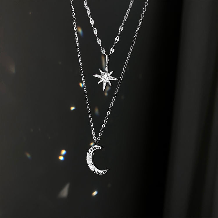 超闪六芒星月项链女ins潮小众设计轻奢高级感百搭锁骨链女颈链