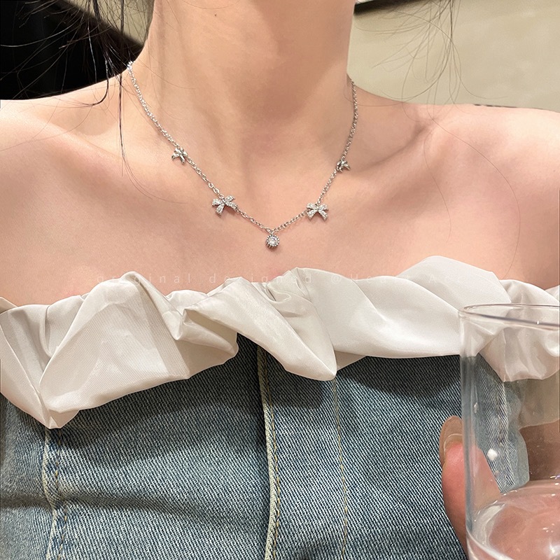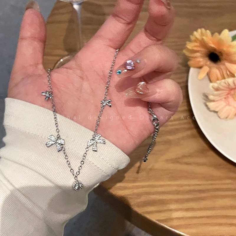 仙女的眼泪~四蝴蝶结项链女ins潮小众高级设计感锁骨链精致颈链女