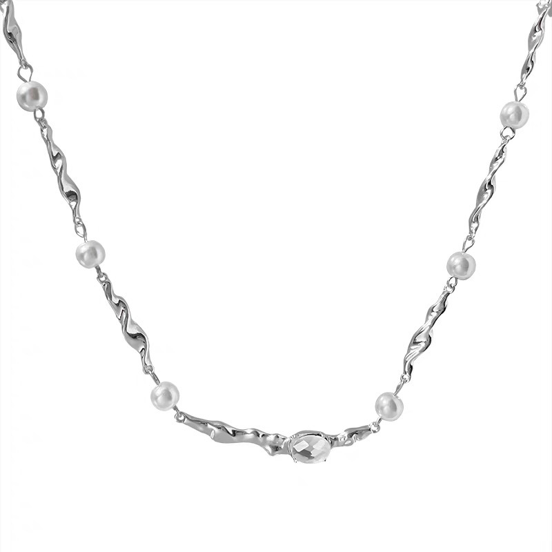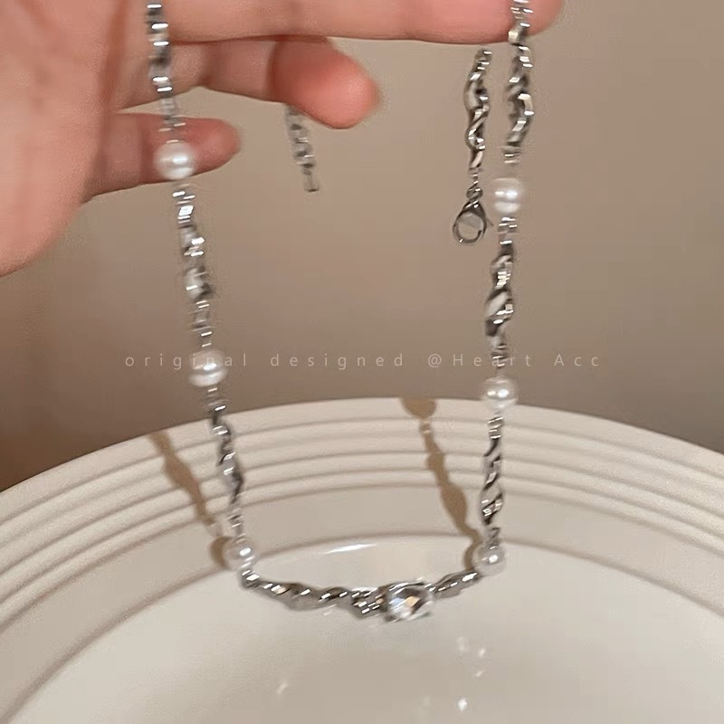 法式不掉色珍珠锆石项链女轻奢小众高级感配饰颈链气质银色锁骨链