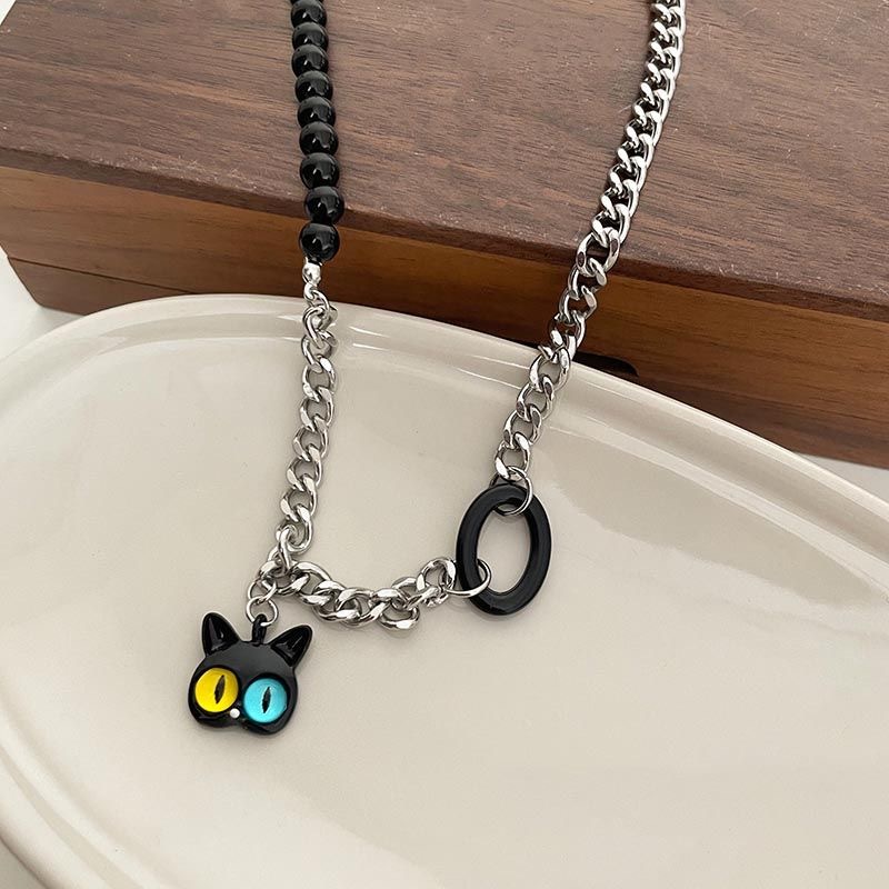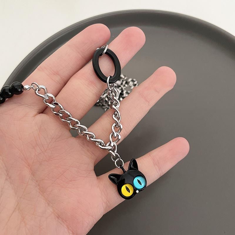 黑色搞怪猫咪项链女ins潮嘻哈甜酷锁骨链百搭情侣卫衣链网红配饰