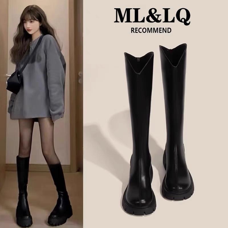 长筒靴女2025新款秋冬厚底显瘦黑色不过膝长靴软皮高筒骑士靴