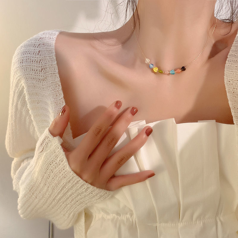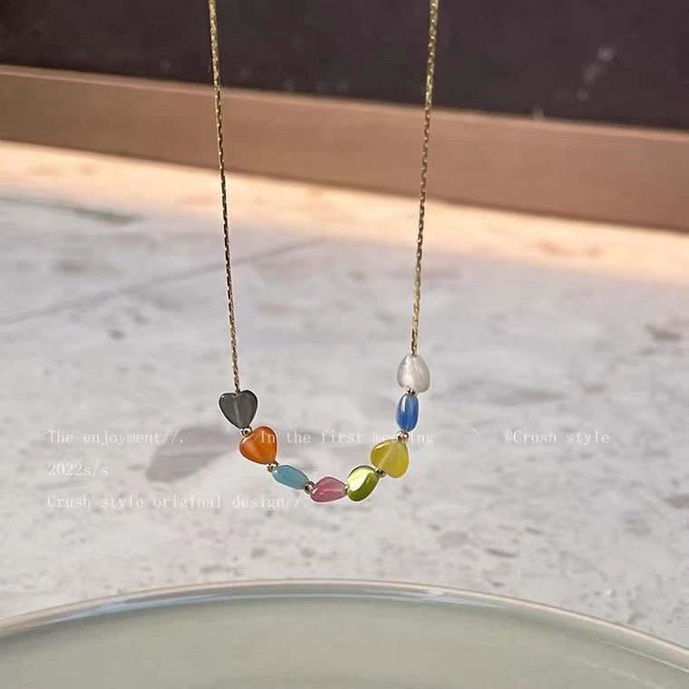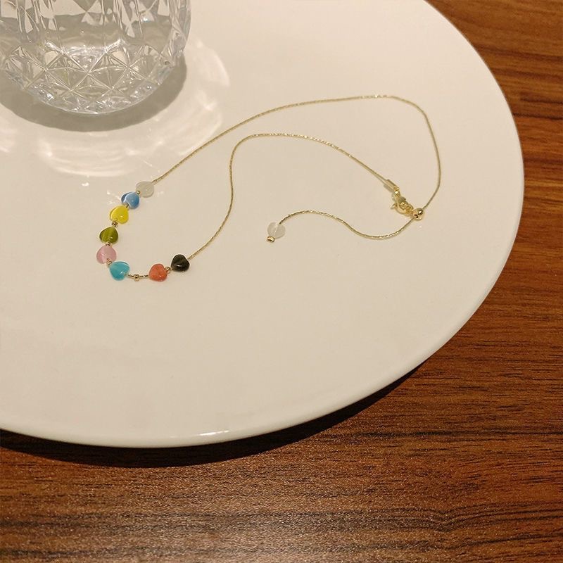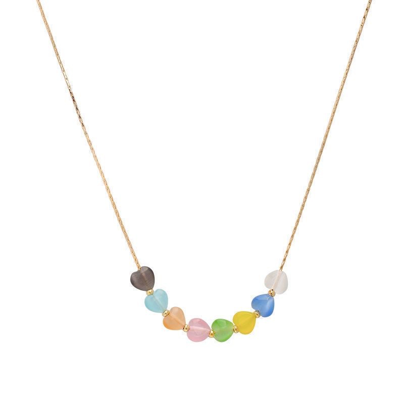 七彩色爱心项链女ins潮甜美少女百搭锁骨链个性简约时尚网红配饰