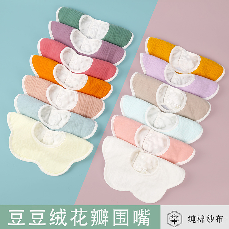 纱布豆豆绒婴儿花瓣围嘴纯棉宝宝口水巾纯棉防水秋冬加厚新生围兜