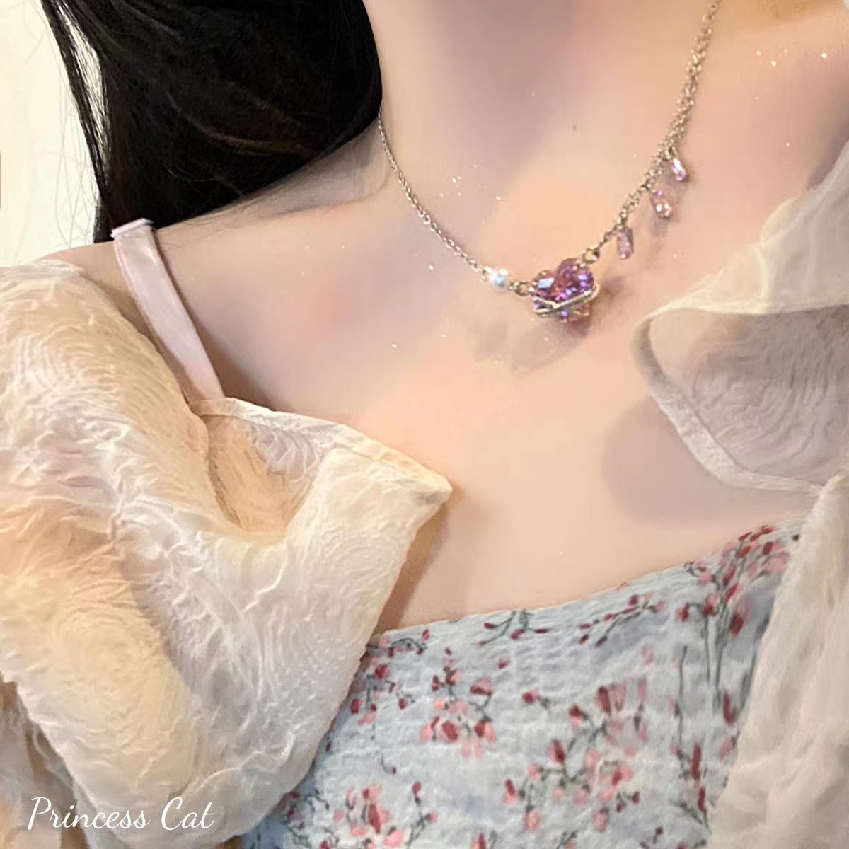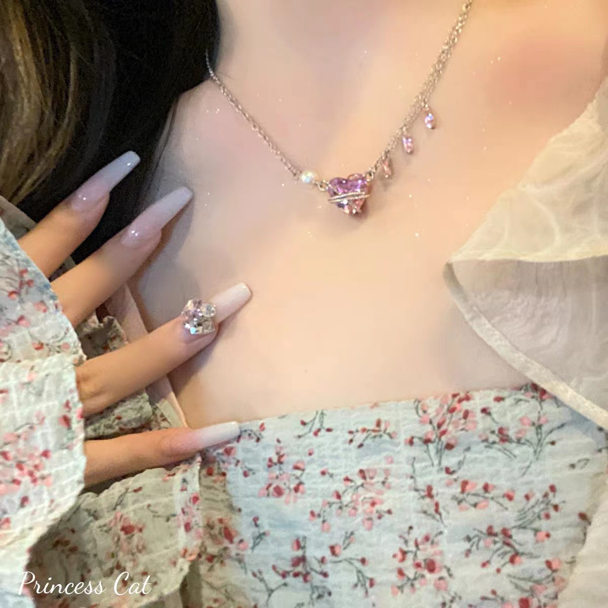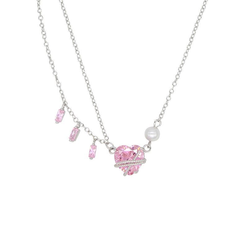 冰粉锆石爱心项链女ins潮小众设计高级感甜美百搭钻链锁骨链颈链