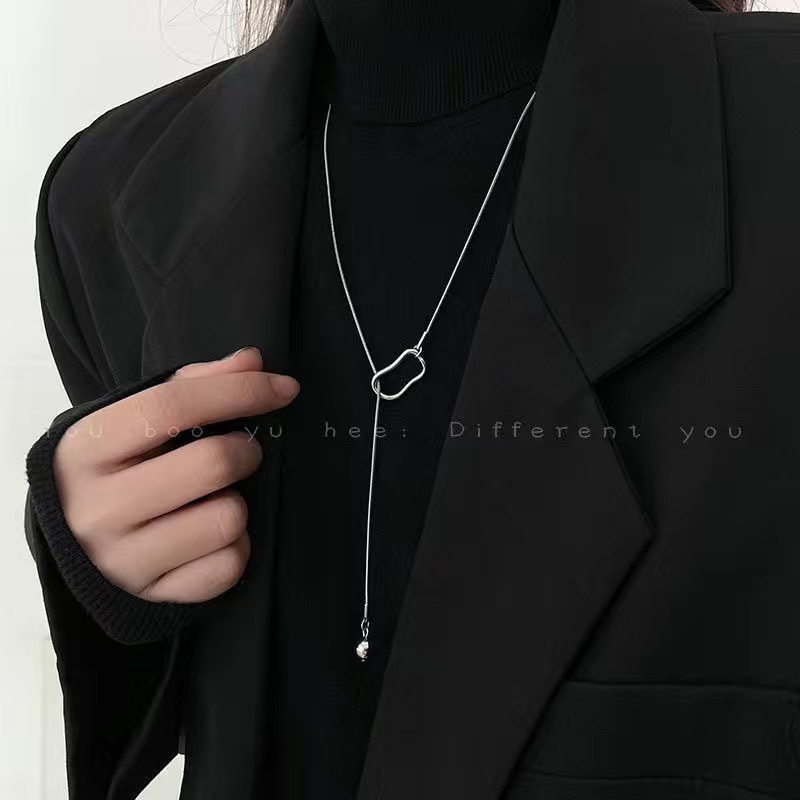 冷淡风银色几何项链女ins小众设计简约高级感长款毛衣链配饰颈链