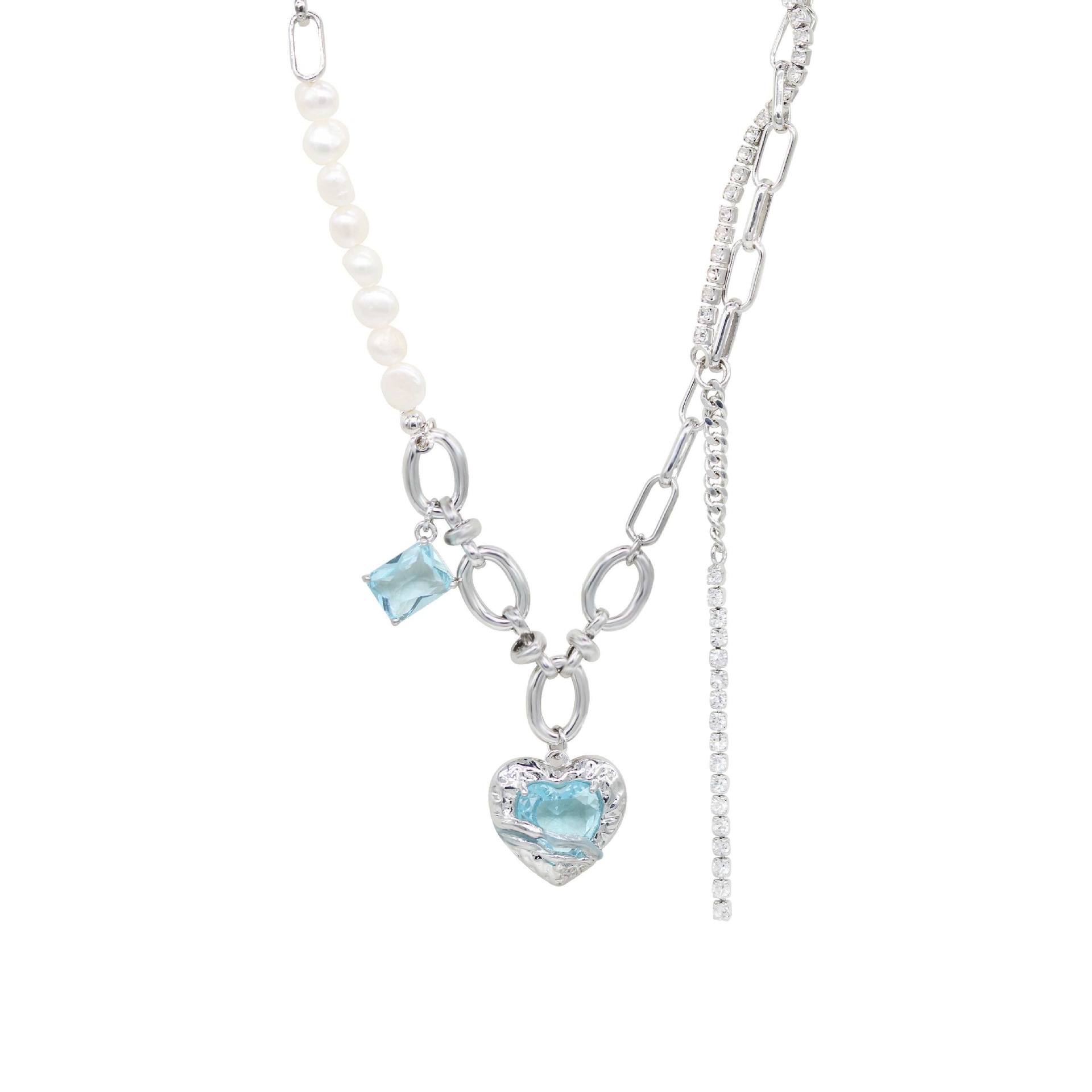 薄荷海蓝色爱心锆石项链女设计感小众ins百搭纯欲风高级锁骨链女