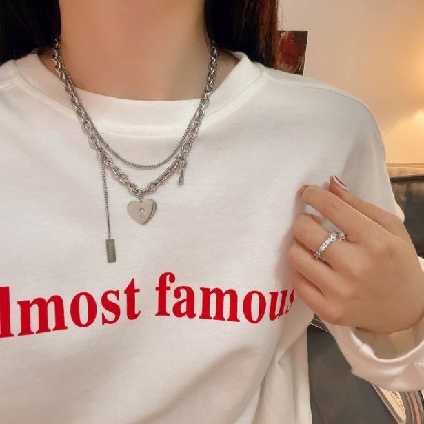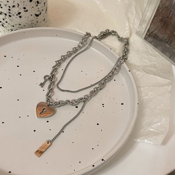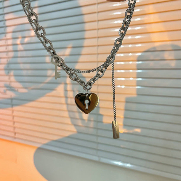 甜酷钛钢爱心钥匙项链女ins冷淡风嘻哈双层卫衣链叠戴个性锁骨链