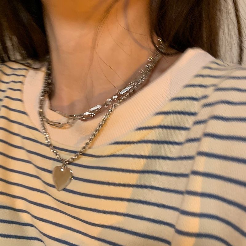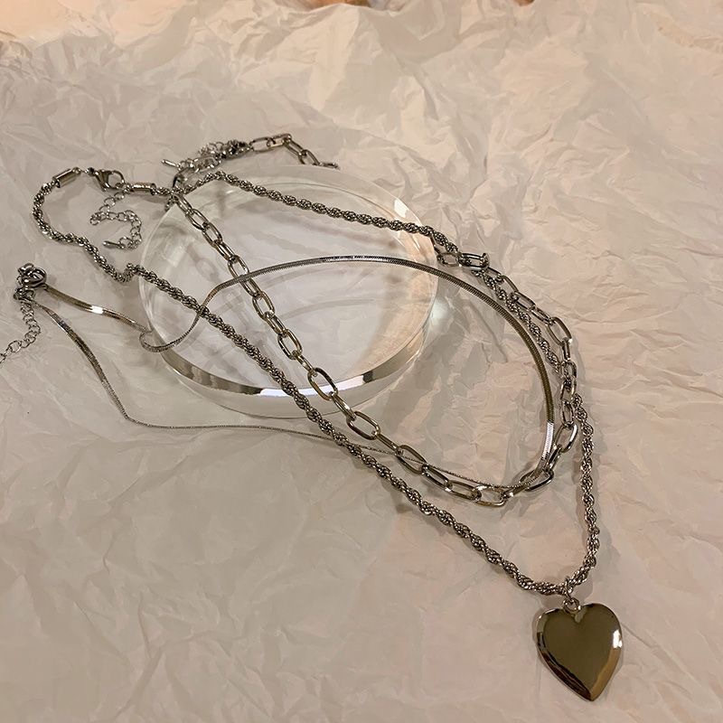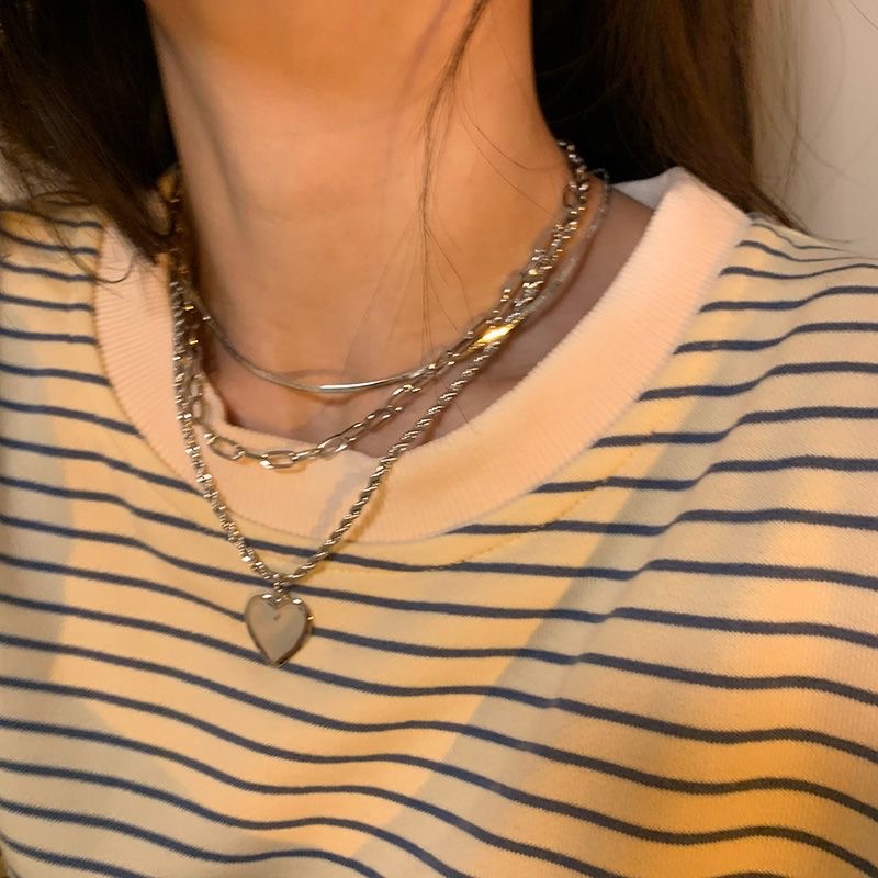 甜酷辣妹风三层叠戴爱心链条项链女ins轻奢简约锁骨链小众毛衣链