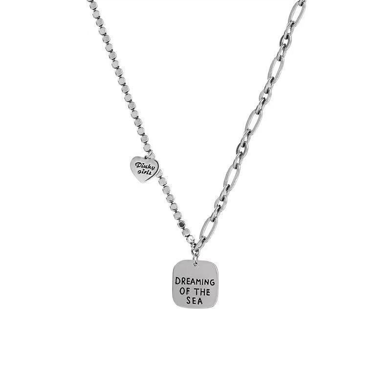 爱心拼接方牌项链女锁骨链ins轻奢小众嘻哈复古个性简约卫衣链女