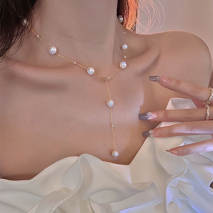 法式珍珠项链女气质百搭流苏锁骨链ins潮小众高级设计感网红配饰