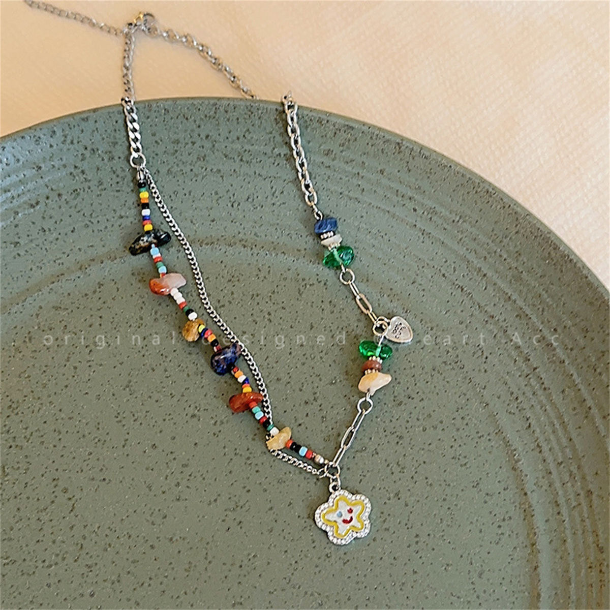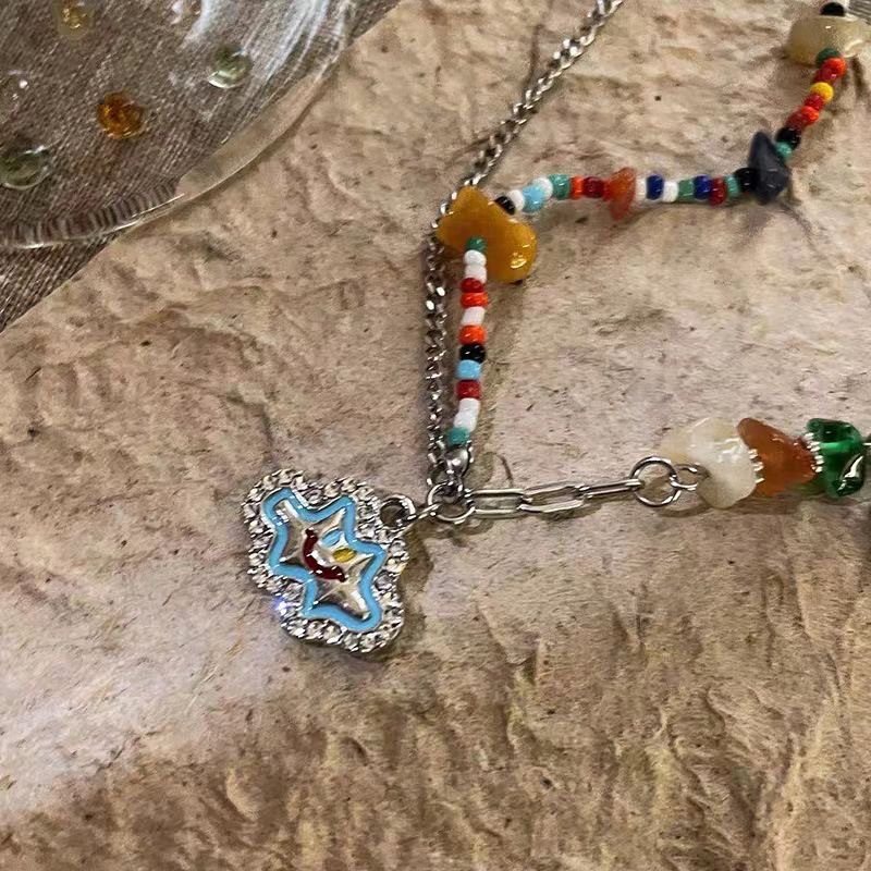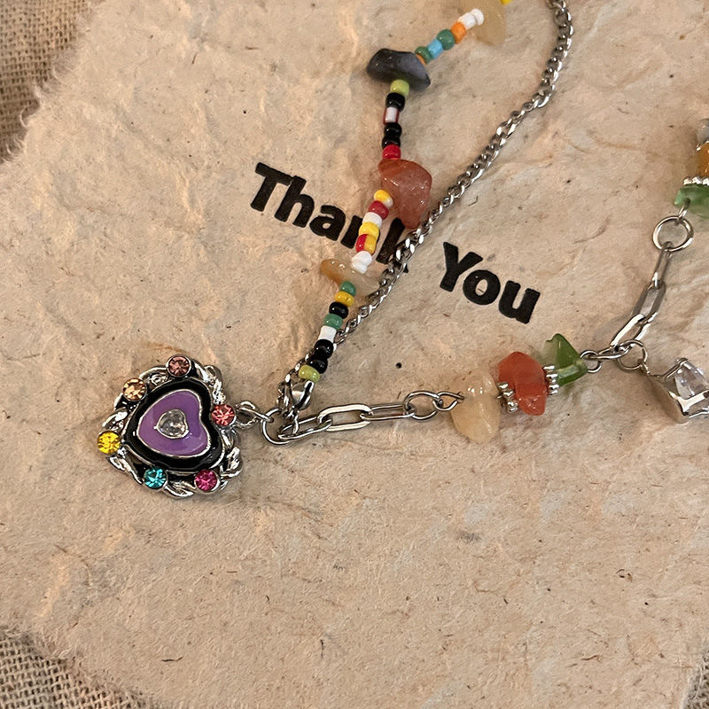七彩石爱心项链女ins潮甜酷辣妹儿笑脸锁骨链高级设计感颈链女