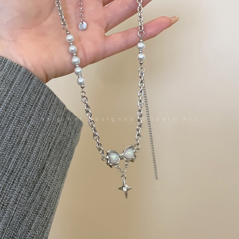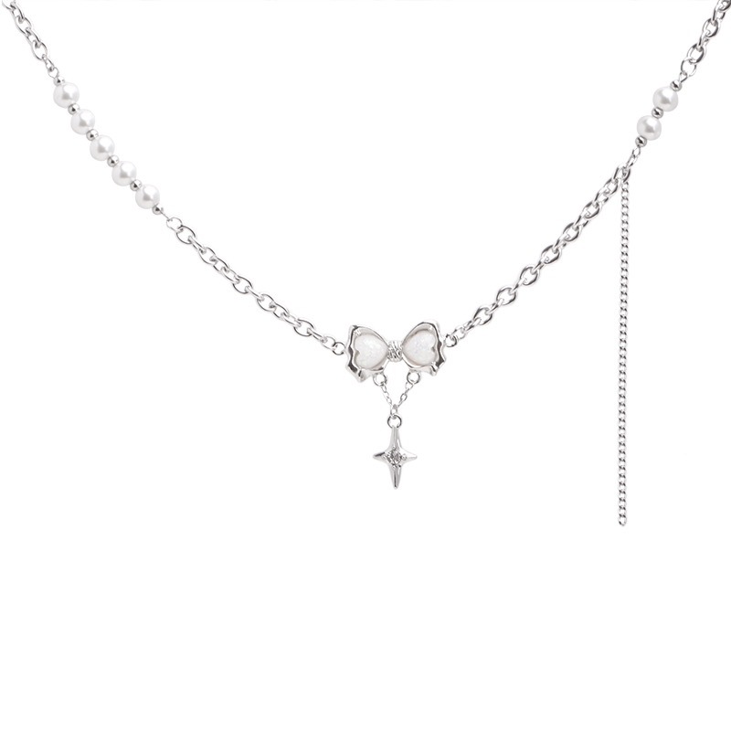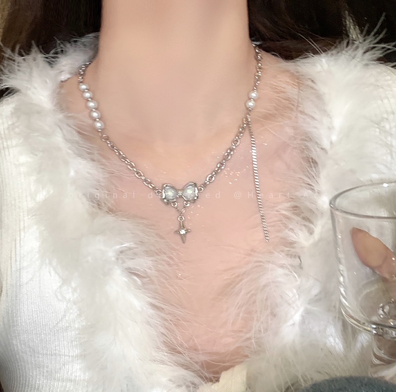 甜酷风蝴蝶结珍珠项链女轻奢小众高级感配饰个性设计感爱心锁骨链
