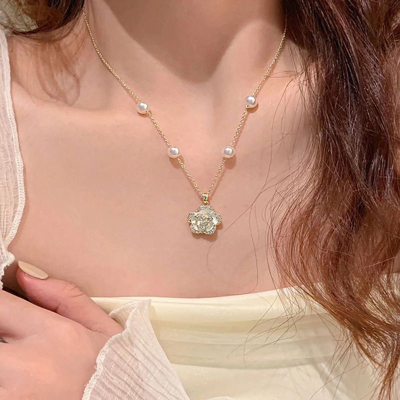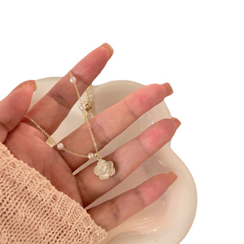 山茶花珍珠项链女新款网红轻奢小众高级感气质锁骨链配饰