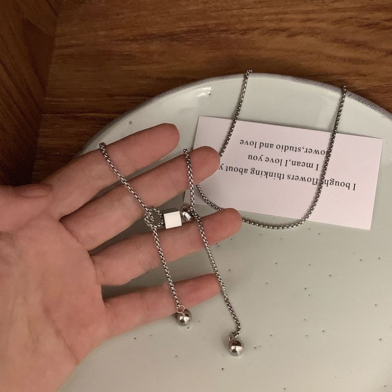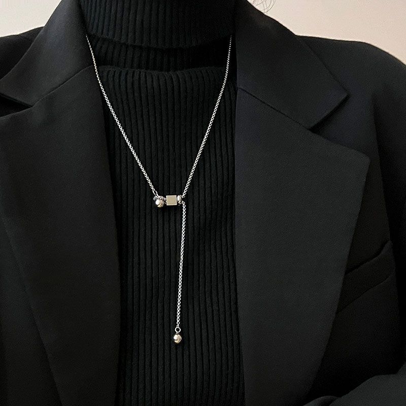 甜酷可调节方块项链女ins潮小众设计简约钛钢不掉色冷淡风毛衣链
