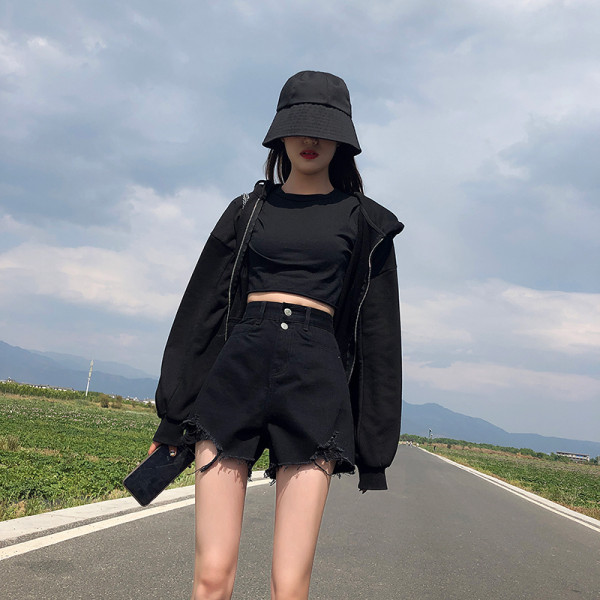 黑色牛仔短裤女超高腰显瘦年夏季新款a字宽松超短裤外穿夏天