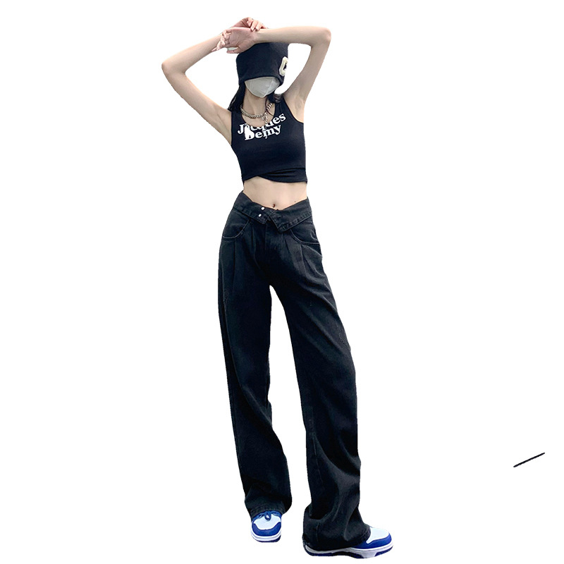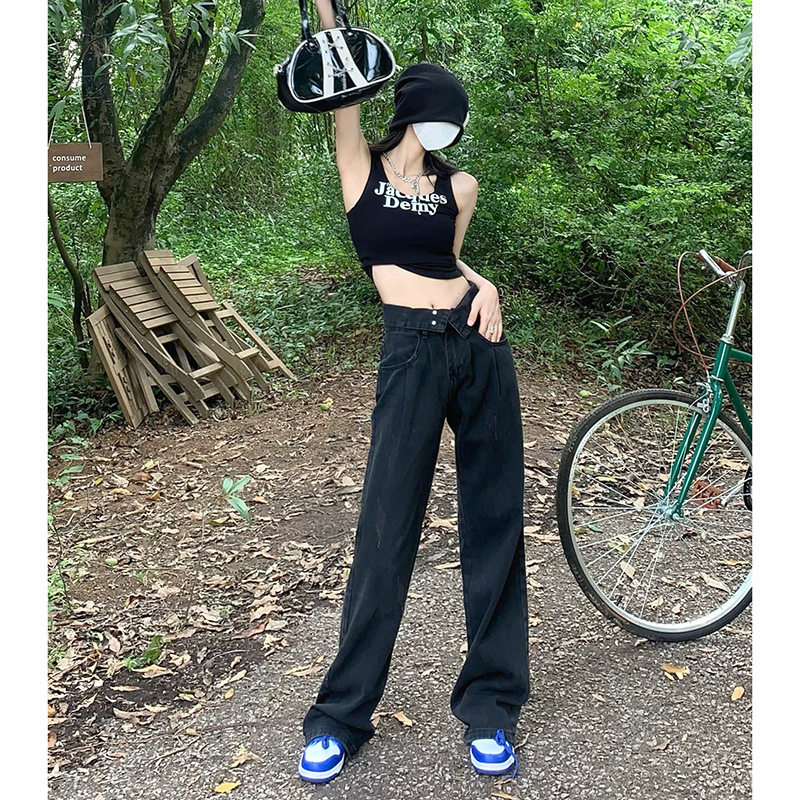 黑色阔腿牛仔裤女年春秋新款高腰直筒宽松显瘦垂感拖地裤子潮