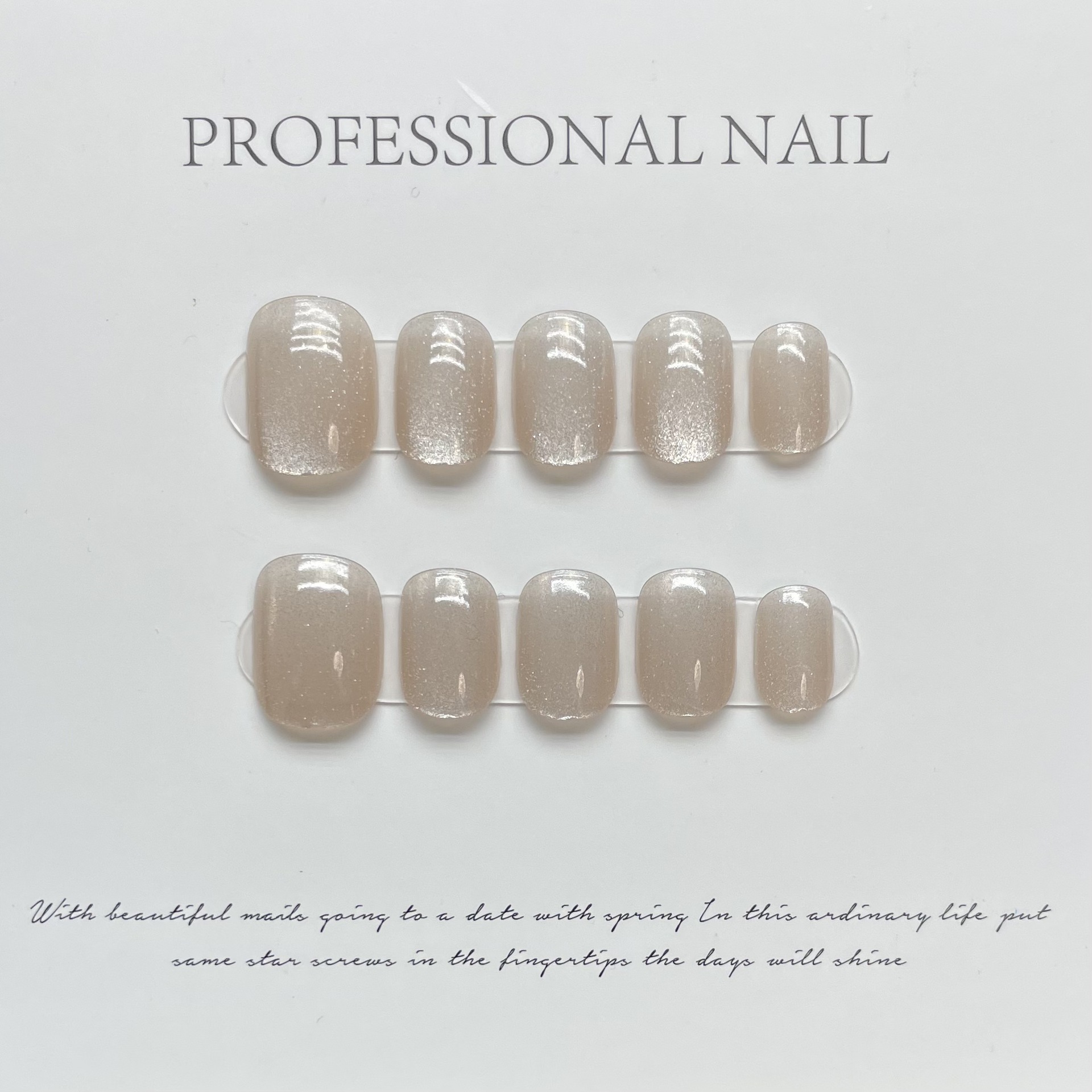 多巴胺手工穿戴甲香槟猫眼手工纯色短款美甲七彩镭射彩虹猫眼