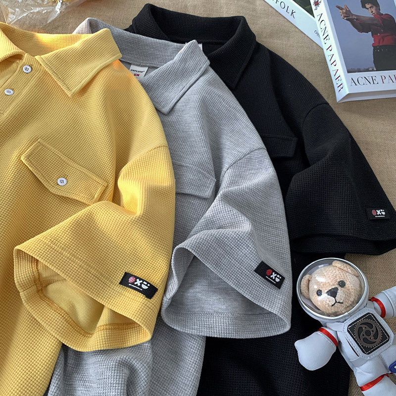华夫格短袖男士夏季设计感小众T恤ins潮牌宽松潮流百搭polo衫衣服