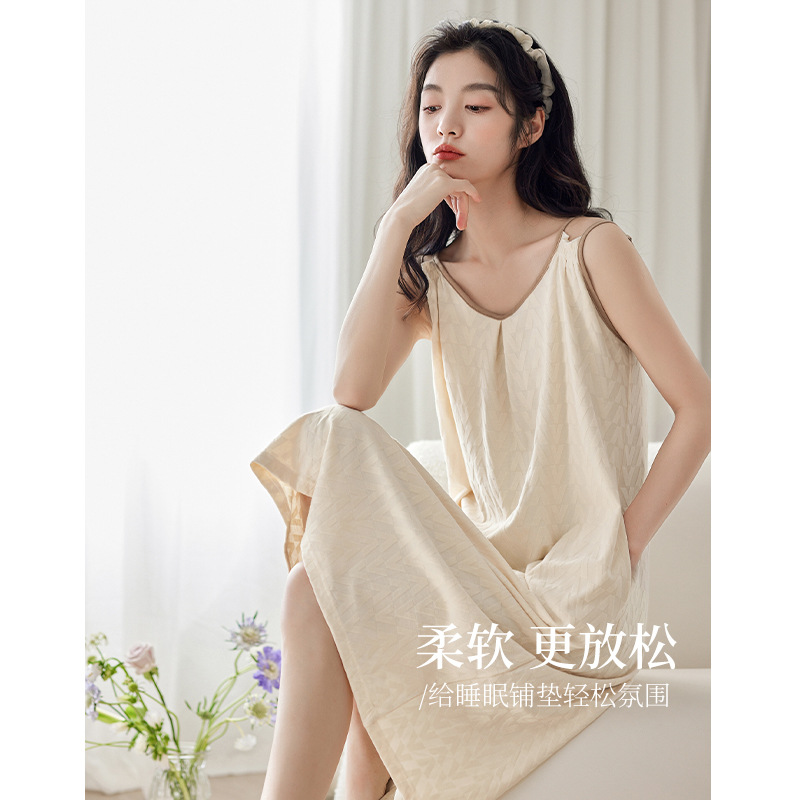 【超柔软】夏季睡裙女纯棉薄款性感纯欲风双肩吊带长款睡衣连衣裙