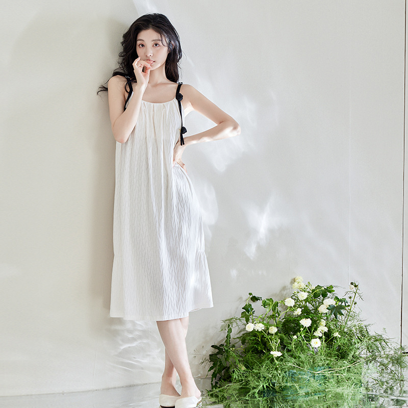 【胸垫款】吊带睡裙女夏季纯棉甜美时尚简约长款睡衣连衣裙家居服