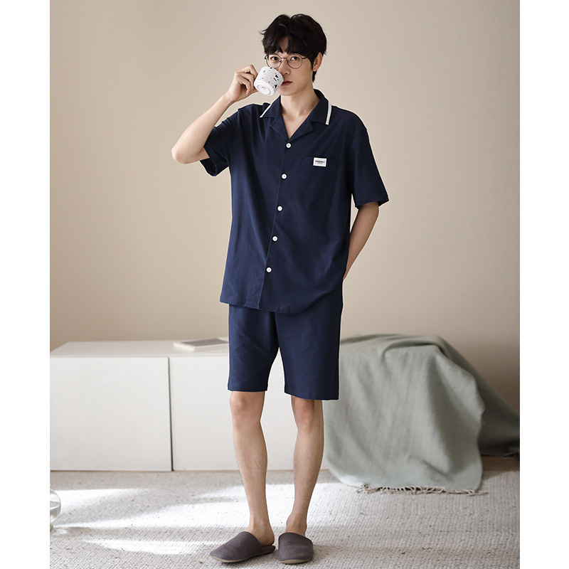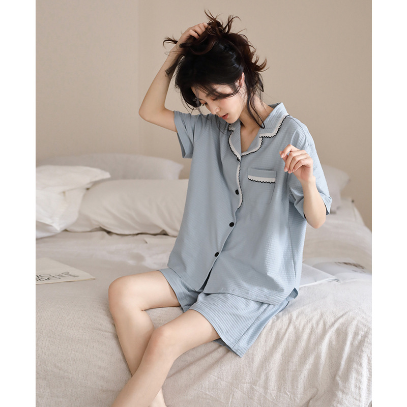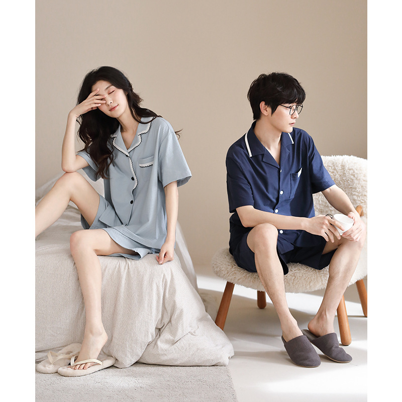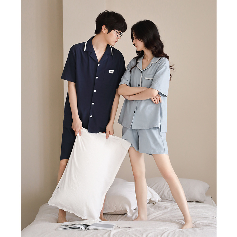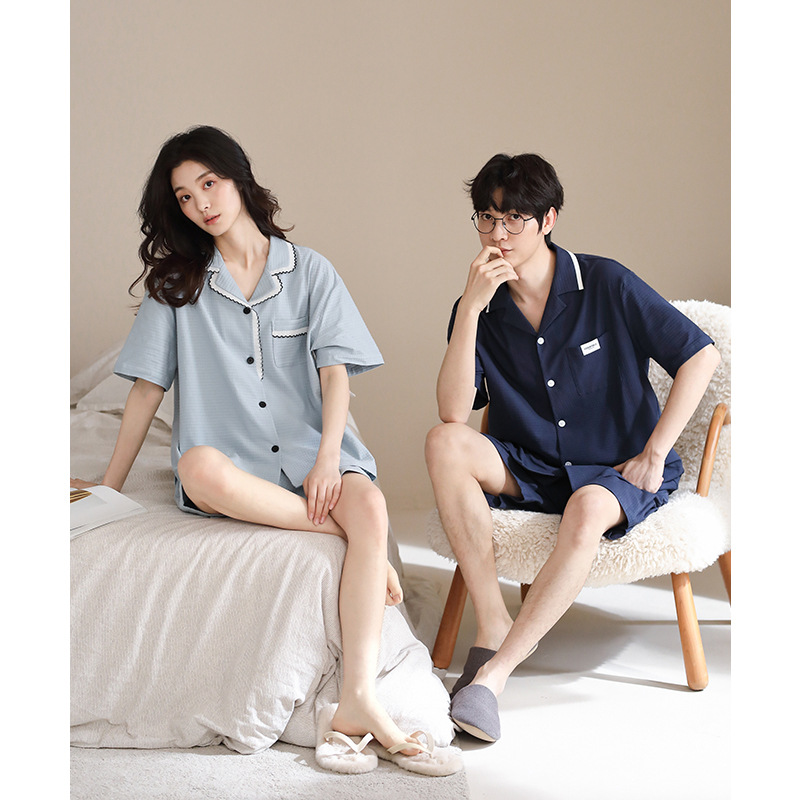 情侣睡衣夏季纯棉透气薄款短袖女简约风纯色高级感男士夏款家居服