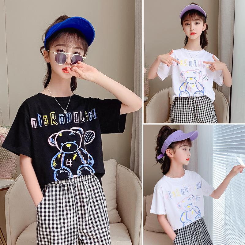 夏装中大女童装棉质短袖T恤新款宽松卡通儿童女孩夏季潮牌打底衫