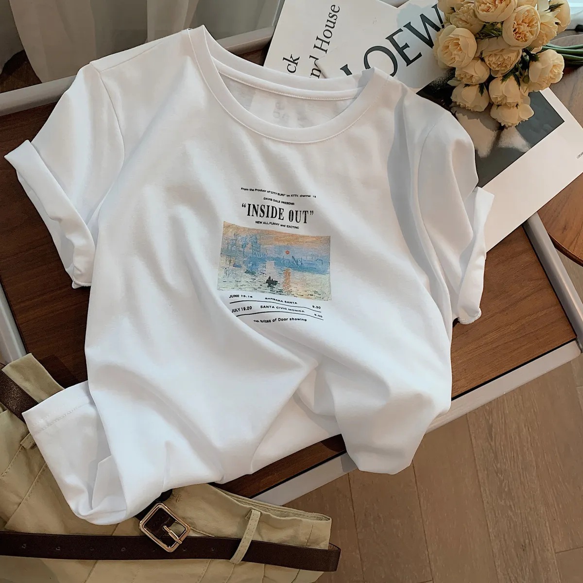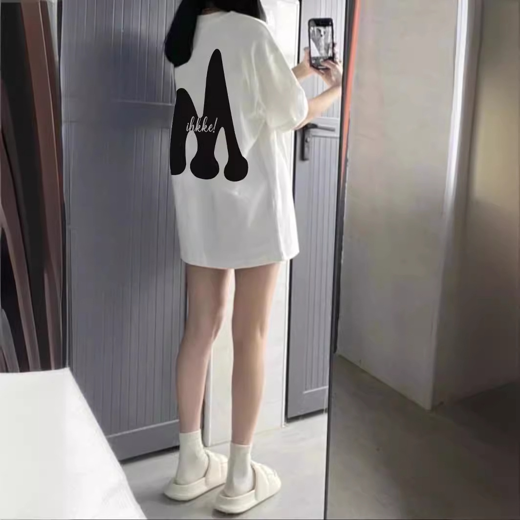 超手感莫代尔白色字母印花短袖t恤女夏新款韩版宽松百搭体恤上衣