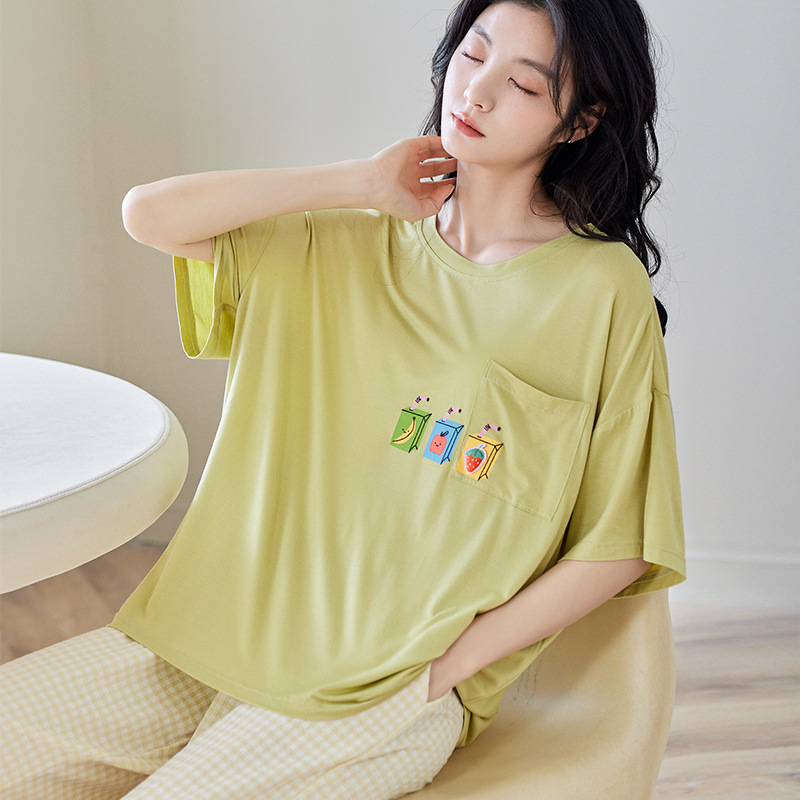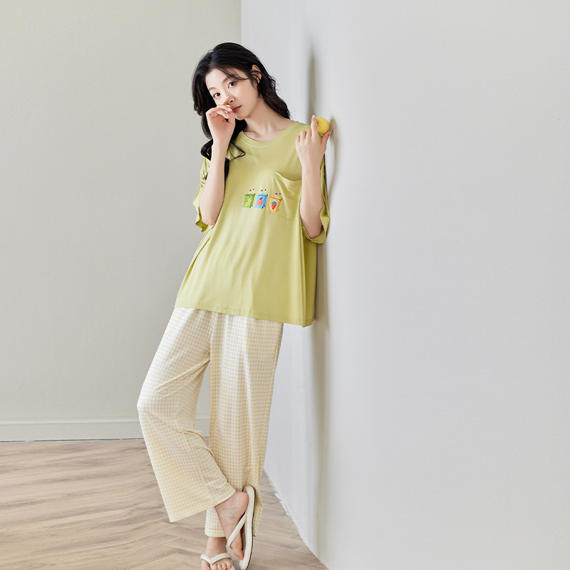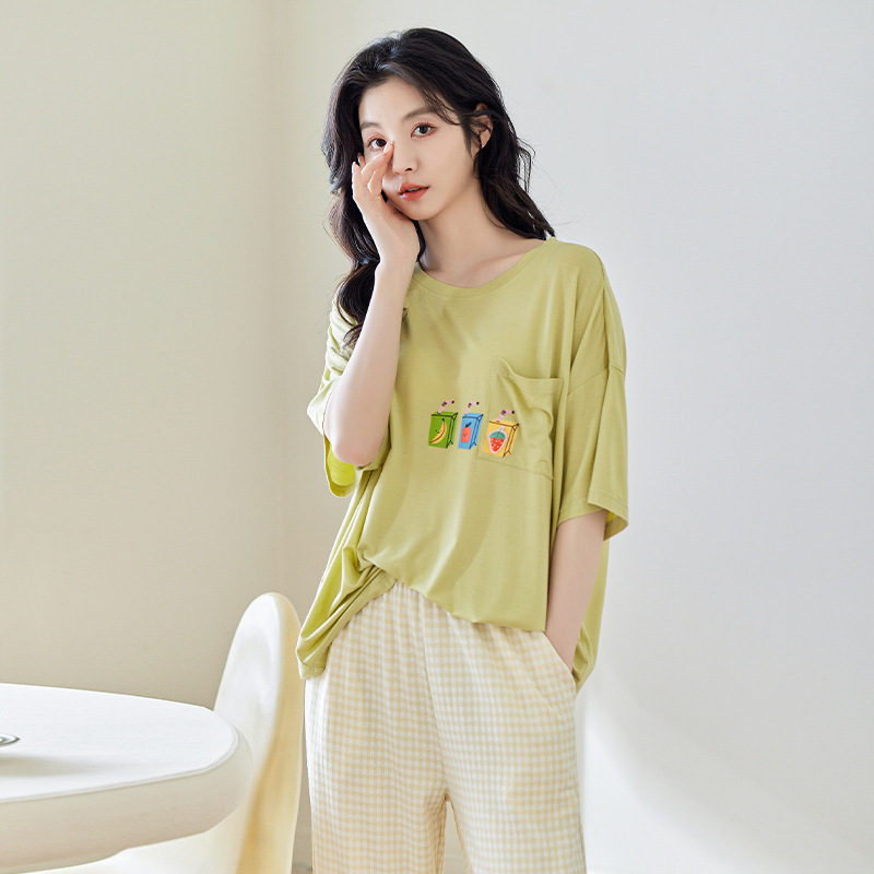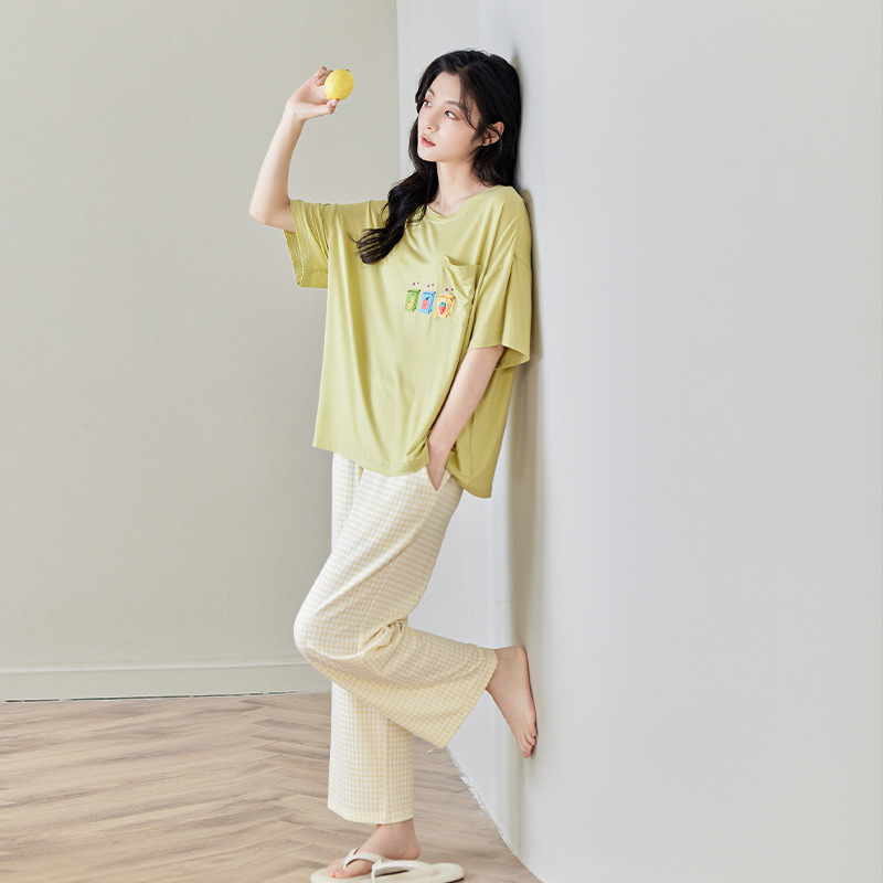 【凉感型】短袖长裤睡衣女款夏天莫代尔薄款时尚简约家居服两件套