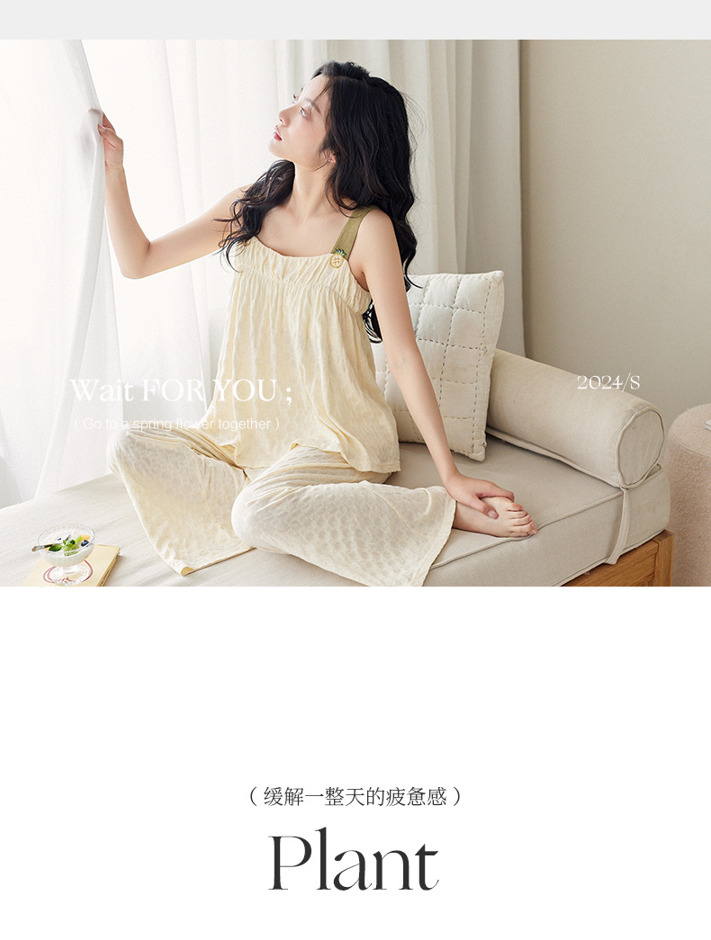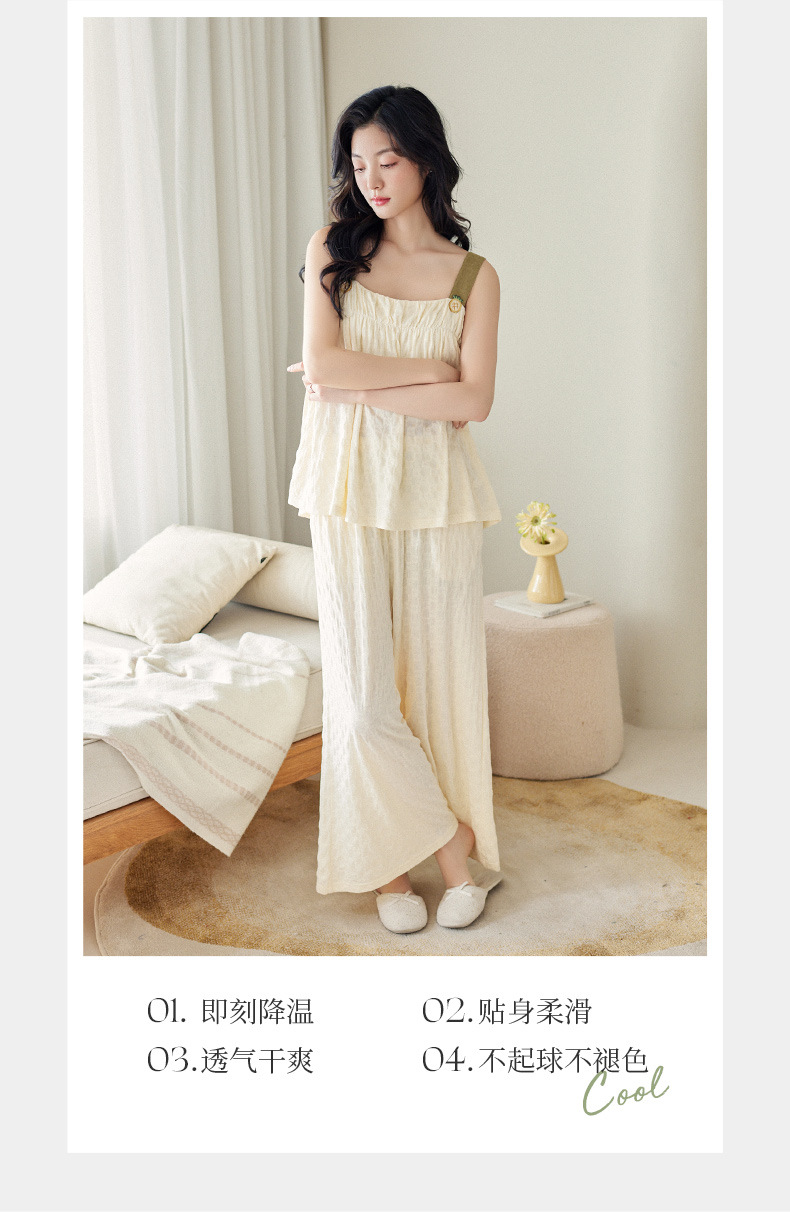 【凉感型】吊带睡衣女夏季新款莫代尔棉甜美时尚长裤家居服两件套
