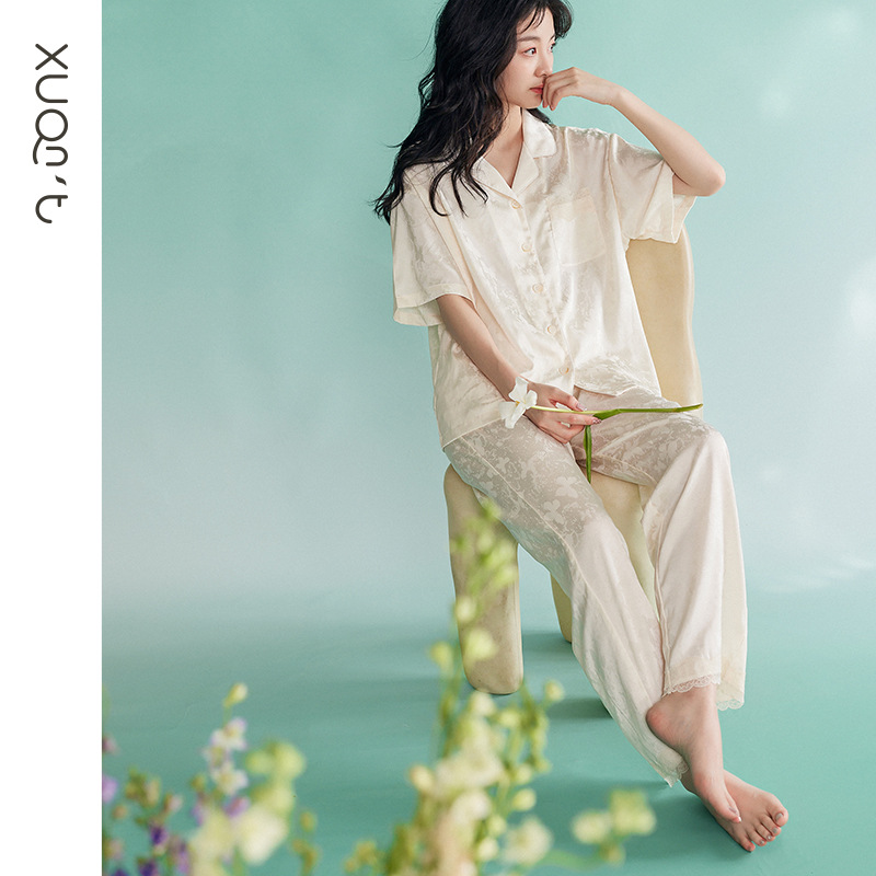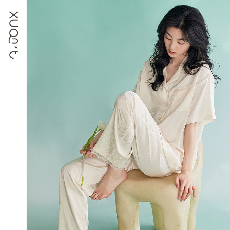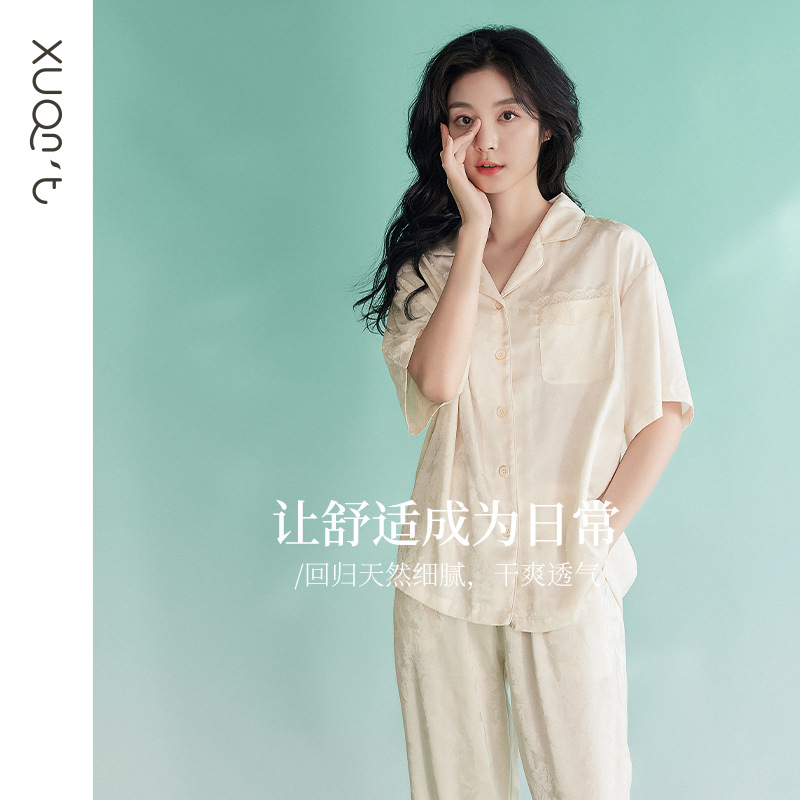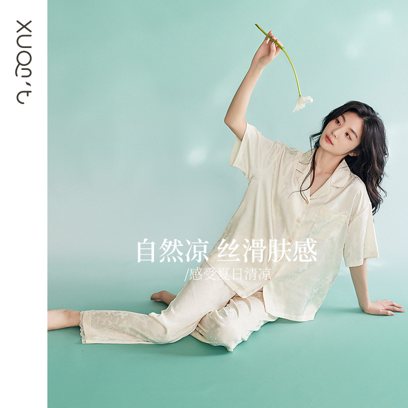 【凉感型】冰丝睡衣女夏款短袖长裤时尚高级感仿真丝家居服两件套