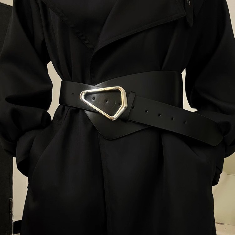 黑色高级感三角形腰封女束腰装饰百搭配裙子西装大衣风衣腰带收腰