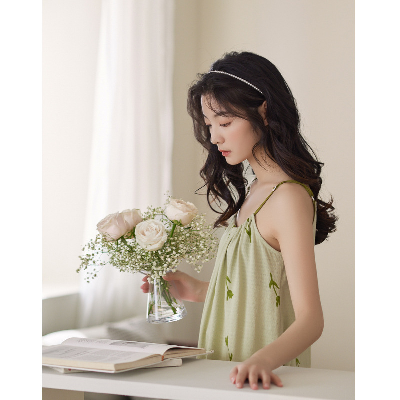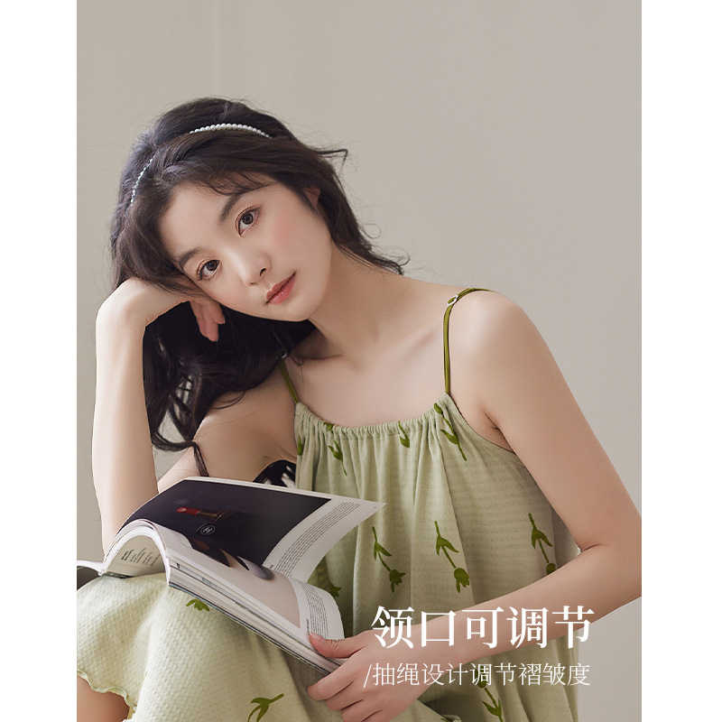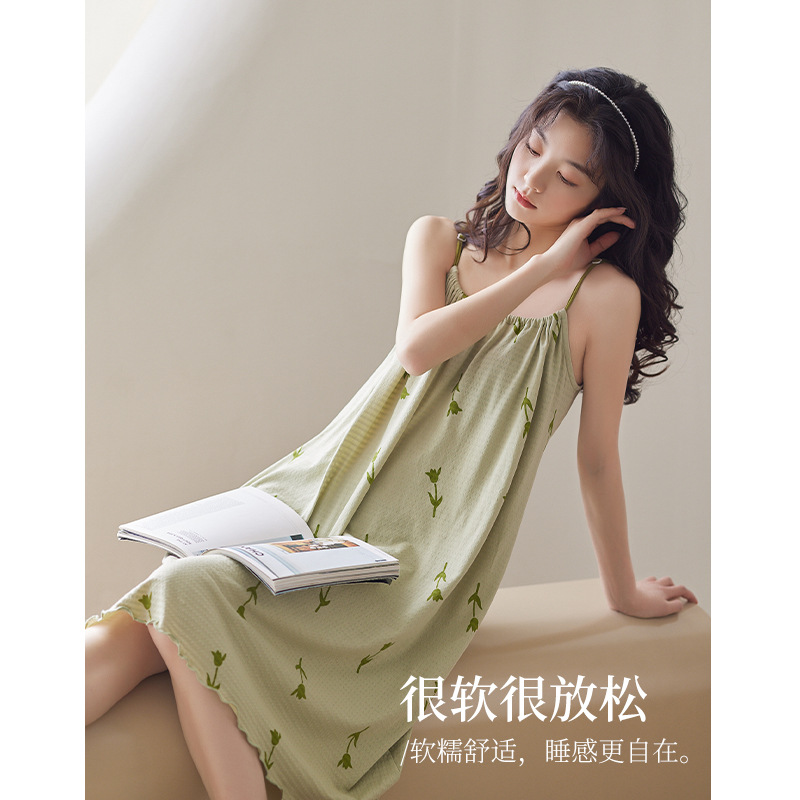 【超柔软】吊带睡裙女夏款纯棉薄款甜美满印郁金香睡衣裙子家居服