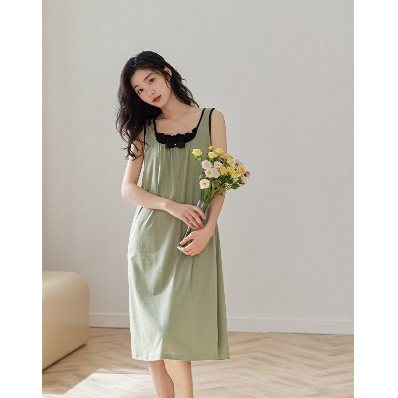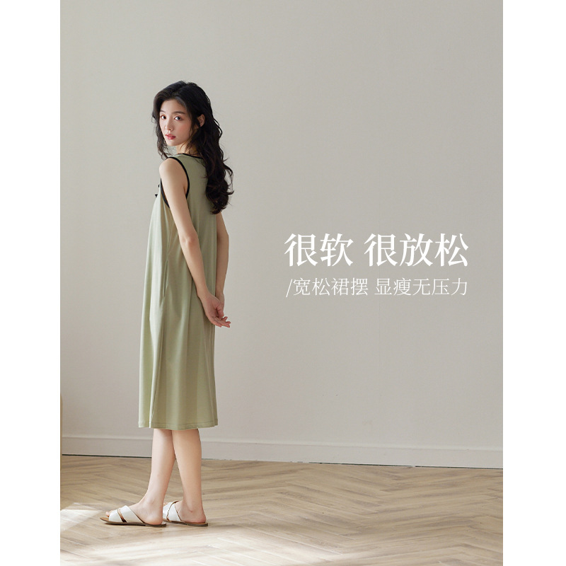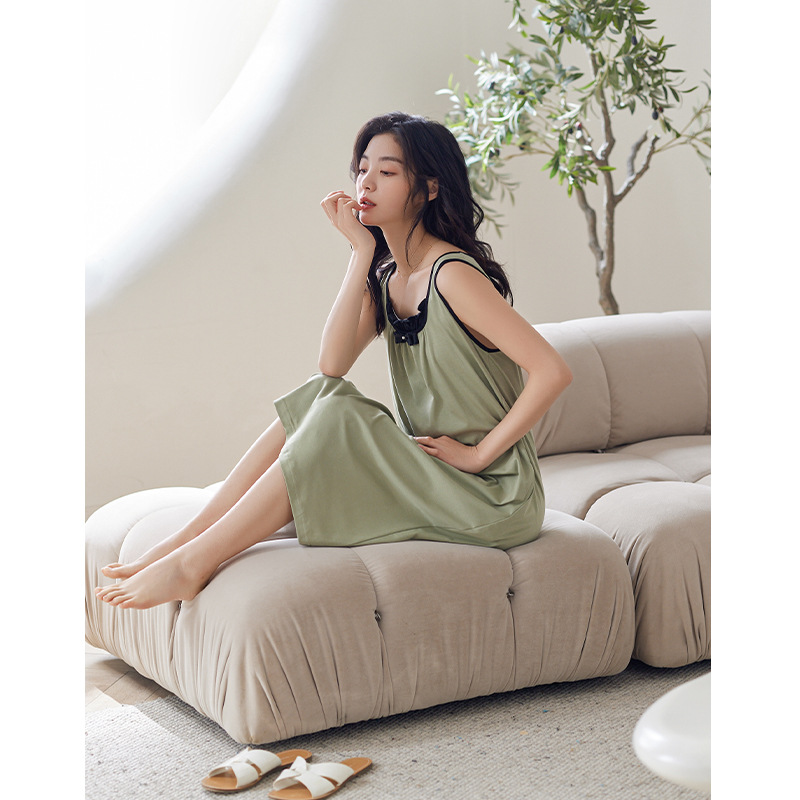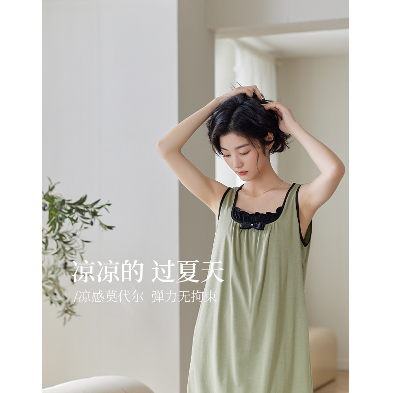 莫代尔睡裙女夏款小背心中长款青草绿吊带睡衣甜美清新连衣裙夏天