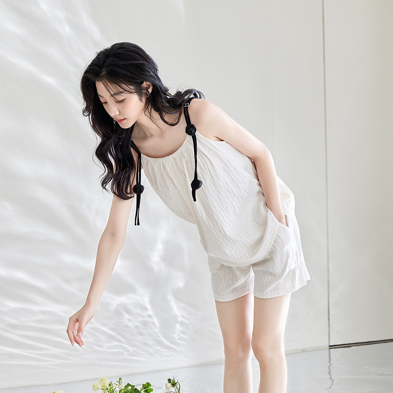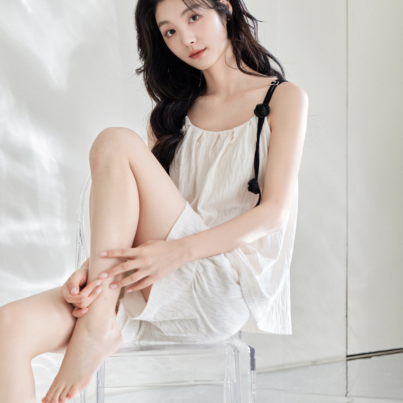 【胸垫款】吊带睡衣女夏款甜美可爱时尚白色纯欲风家居服套装夏天