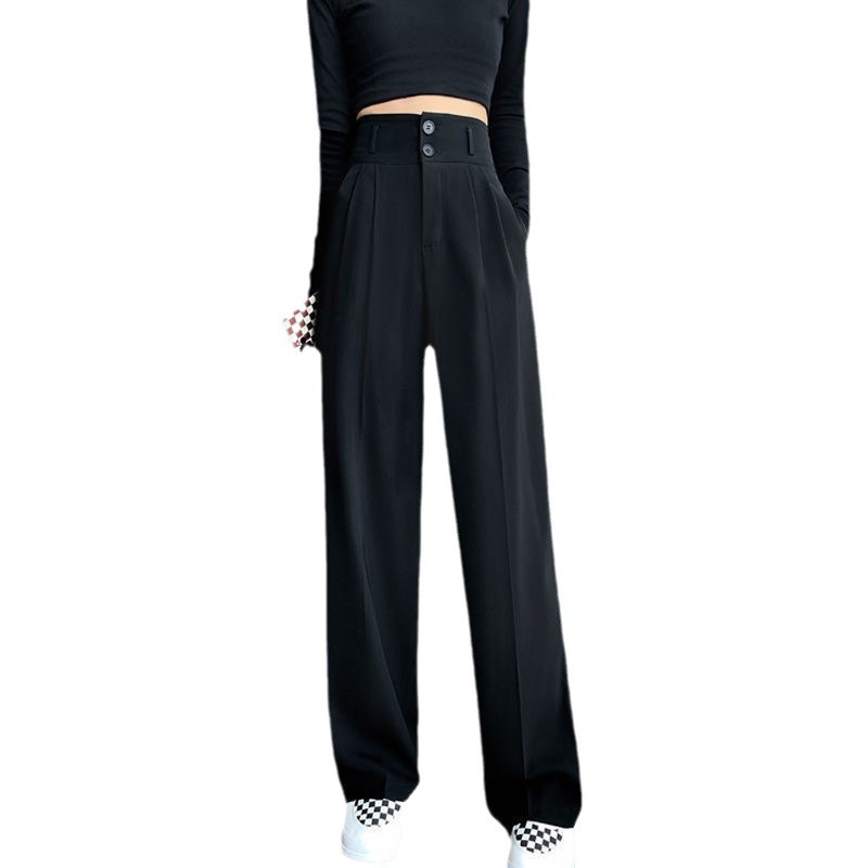 黑色宽松显瘦阔腿裤高腰直筒垂感西装裤显瘦裤子显高休闲女裤