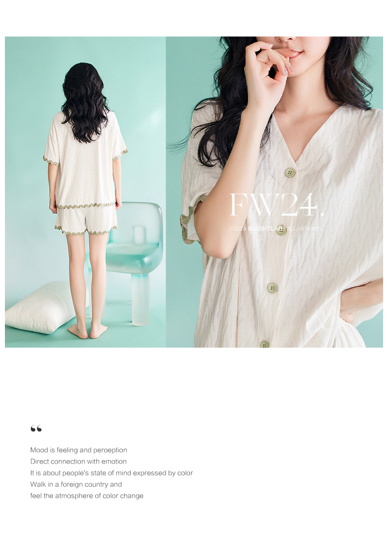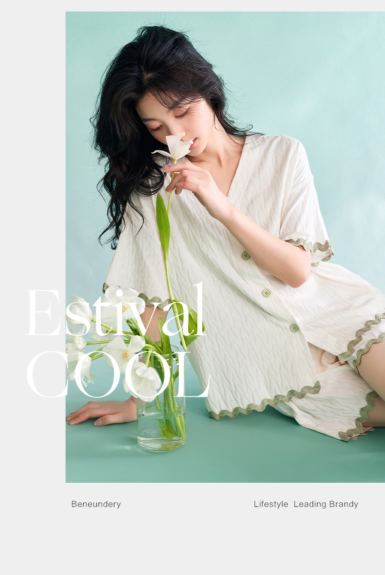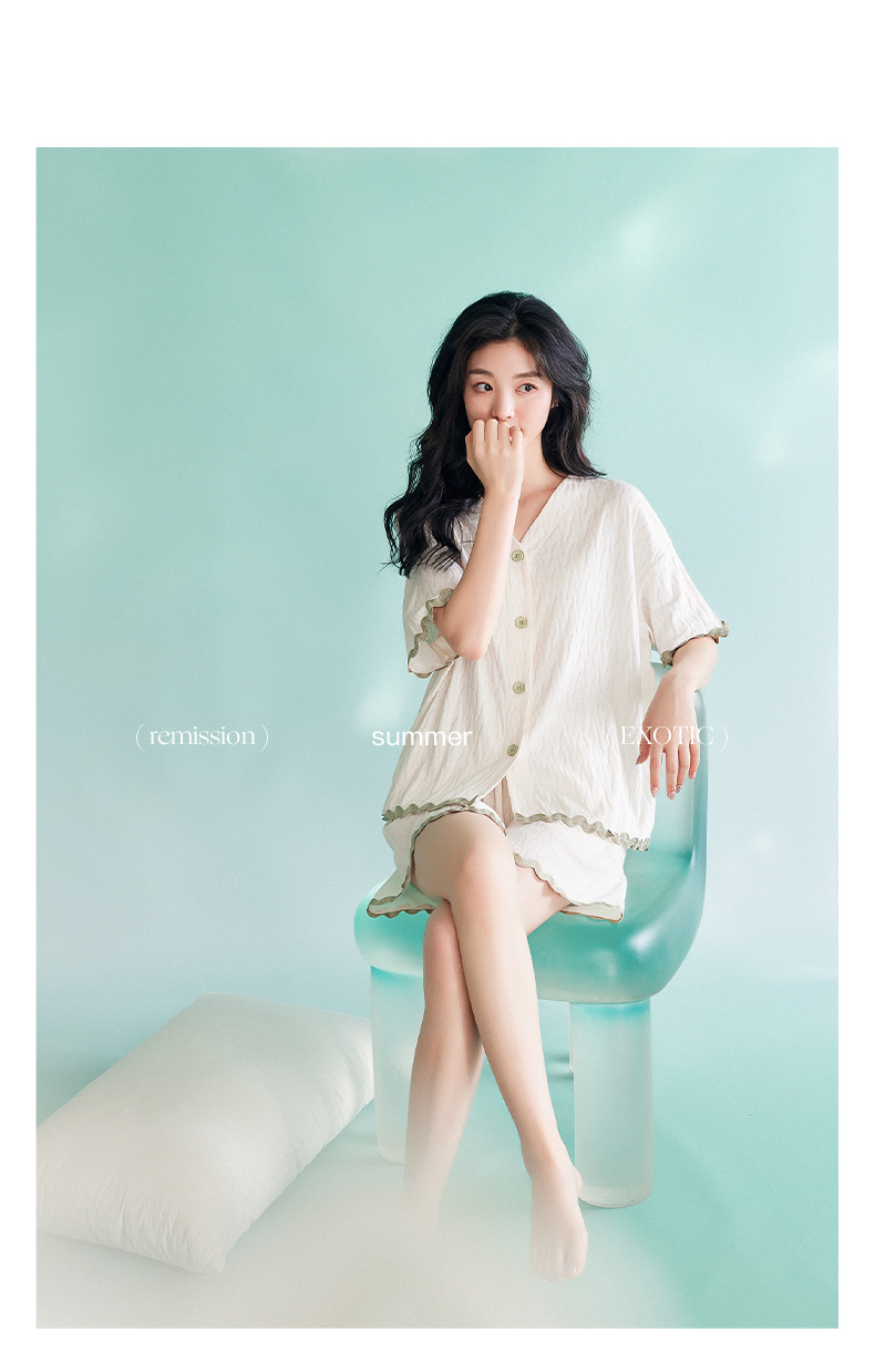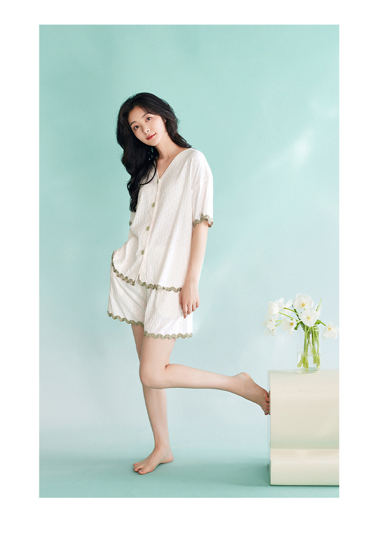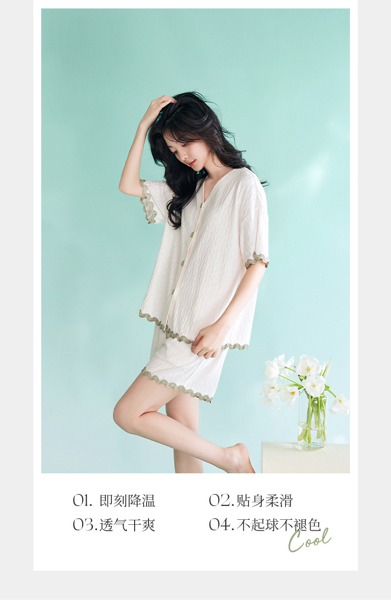 【凉感型】睡衣女夏天新款纯棉短袖白色时尚可外穿家居服套装