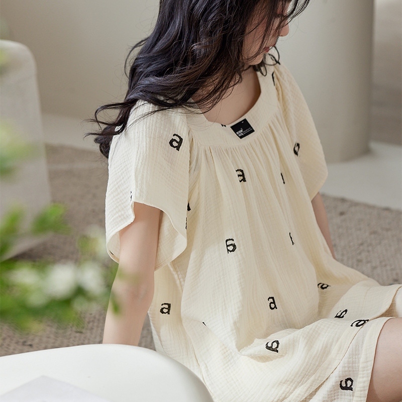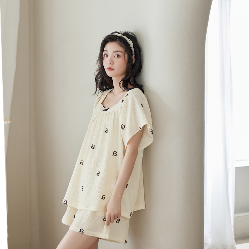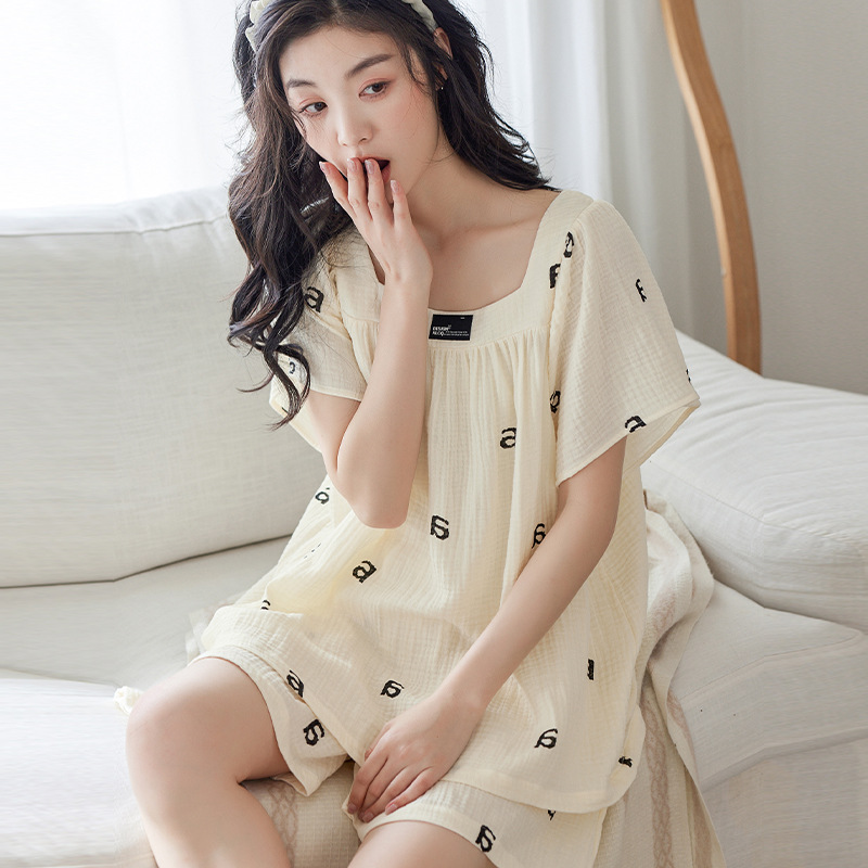 【凉感型】睡衣夏天女款纯棉薄款梭织棉纱布宽松短袖家居服两件套