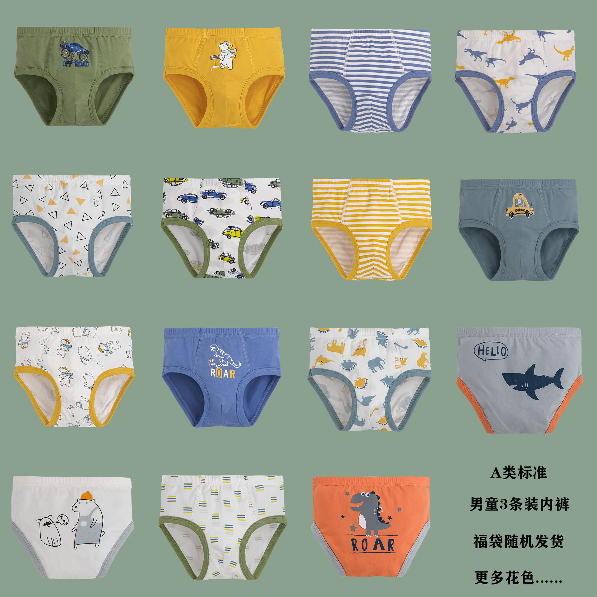 随机福袋A类男童内裤中小童宝宝纯棉三条装三角裤不夹屁屁盲盒