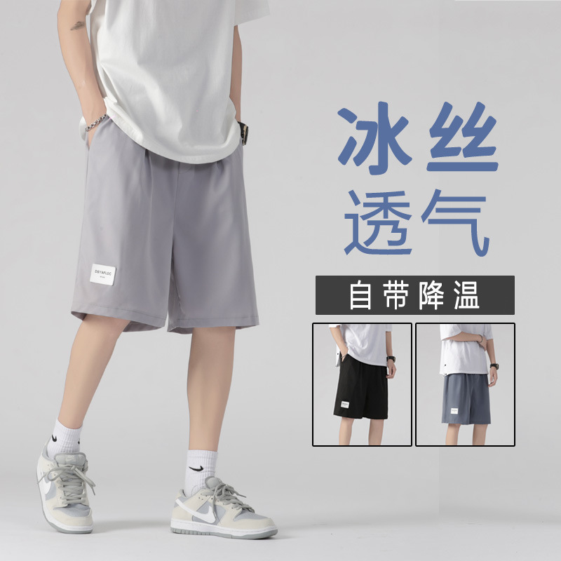 男士短裤男夏季薄款直筒宽松冰丝速干五分休闲裤潮牌篮球运动裤子