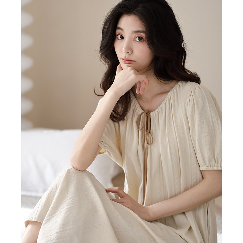 年新款纯棉睡裙女夏季薄款短袖家居服夏款简约高级感夏天睡衣