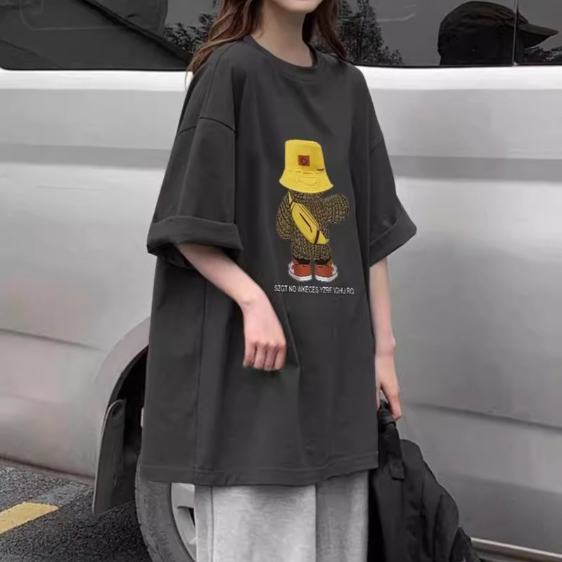 韩版潮牌中长款正肩短袖T恤女夏季小个子宽松印花圆领上衣ins