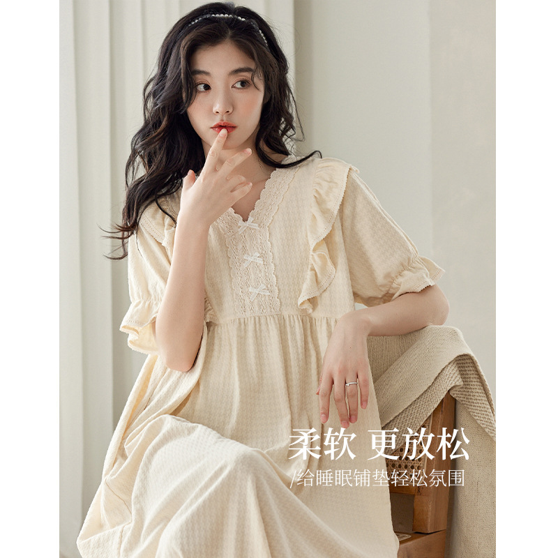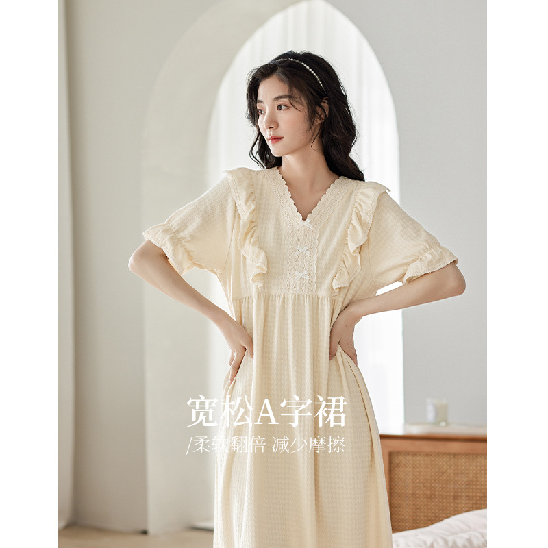 【超柔软】睡裙女夏天短袖长款甜美防凸点睡衣简约休闲裙子家居服