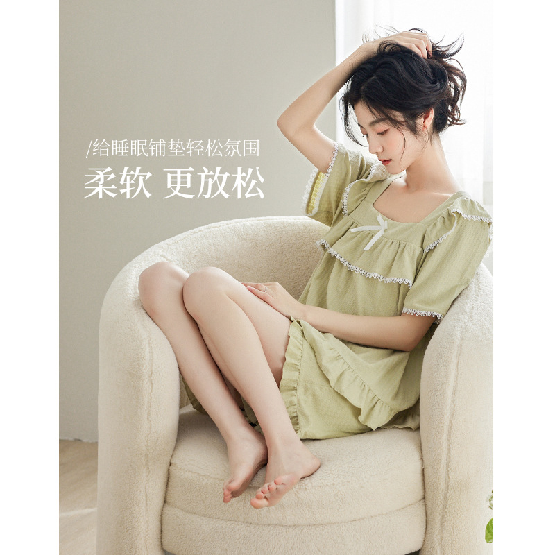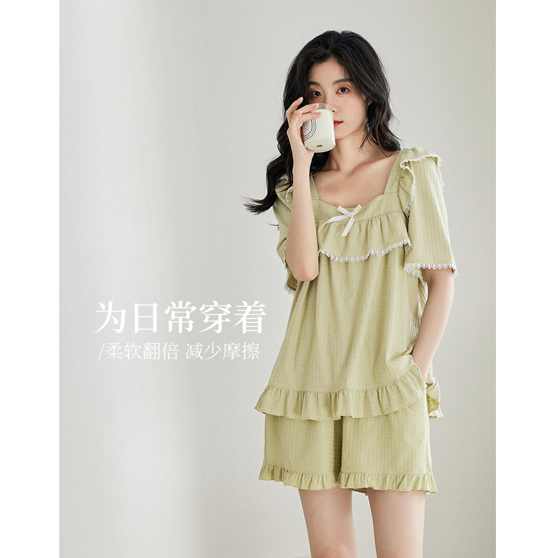 短袖睡衣夏天纯棉薄款少女法式甜美可爱防凸点夏季家居服两件套装