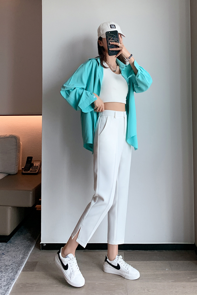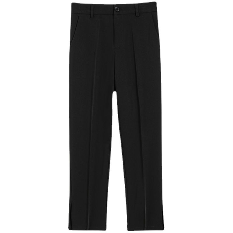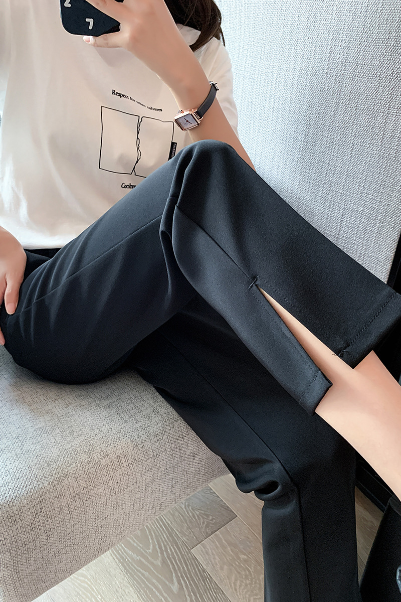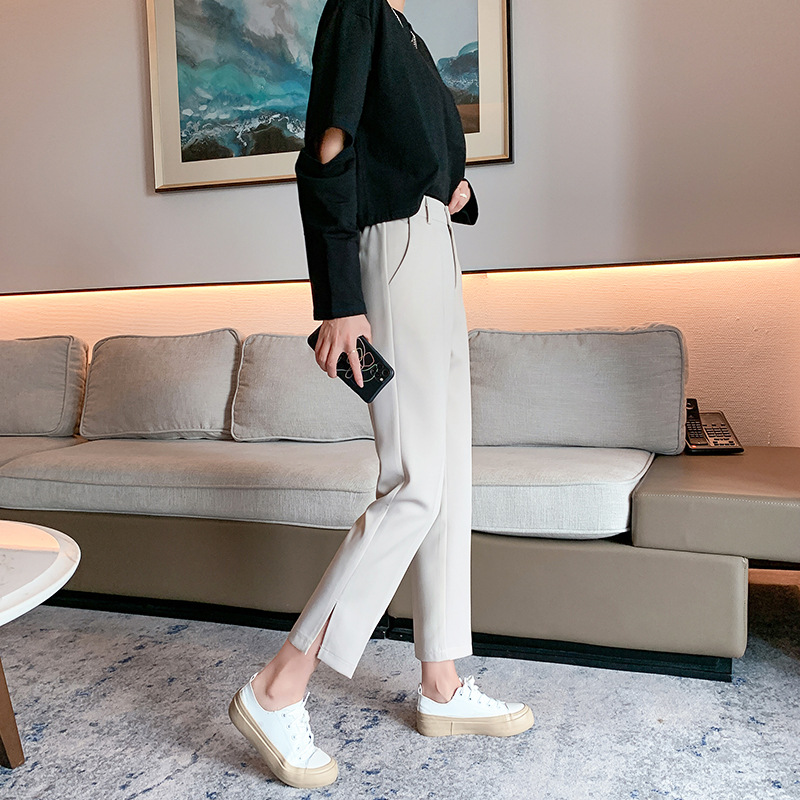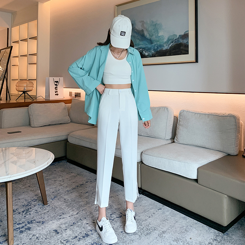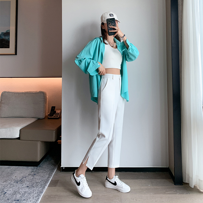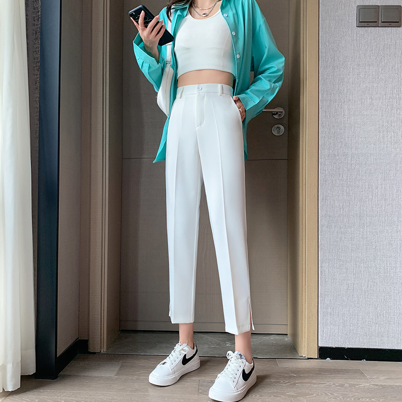西装裤女春夏垂感胖mm大码直筒烟管休闲九分小个子冰丝开叉哈伦裤
