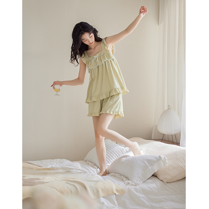 【超柔软】吊带睡衣女夏季纯棉薄款防凸点甜美可爱家居服两件套装
