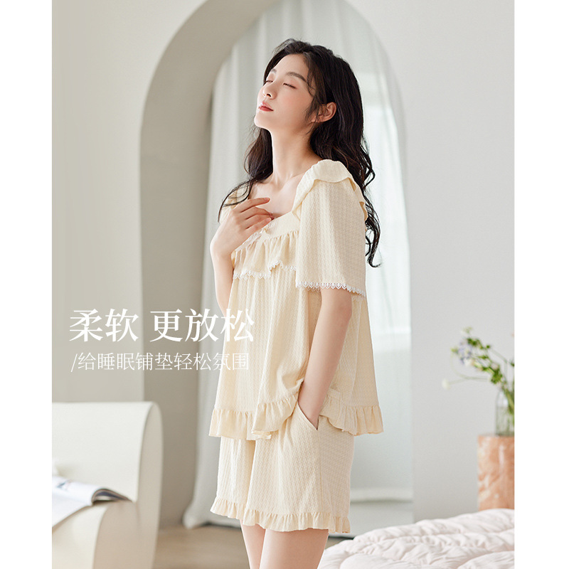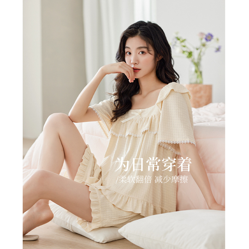 【超柔软】夏季女士睡衣短袖甜美法式公主风纯棉家居服防凸点套装